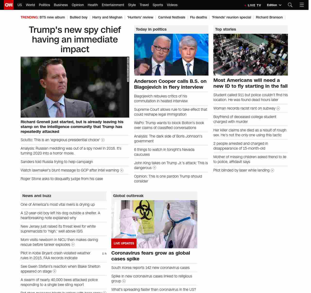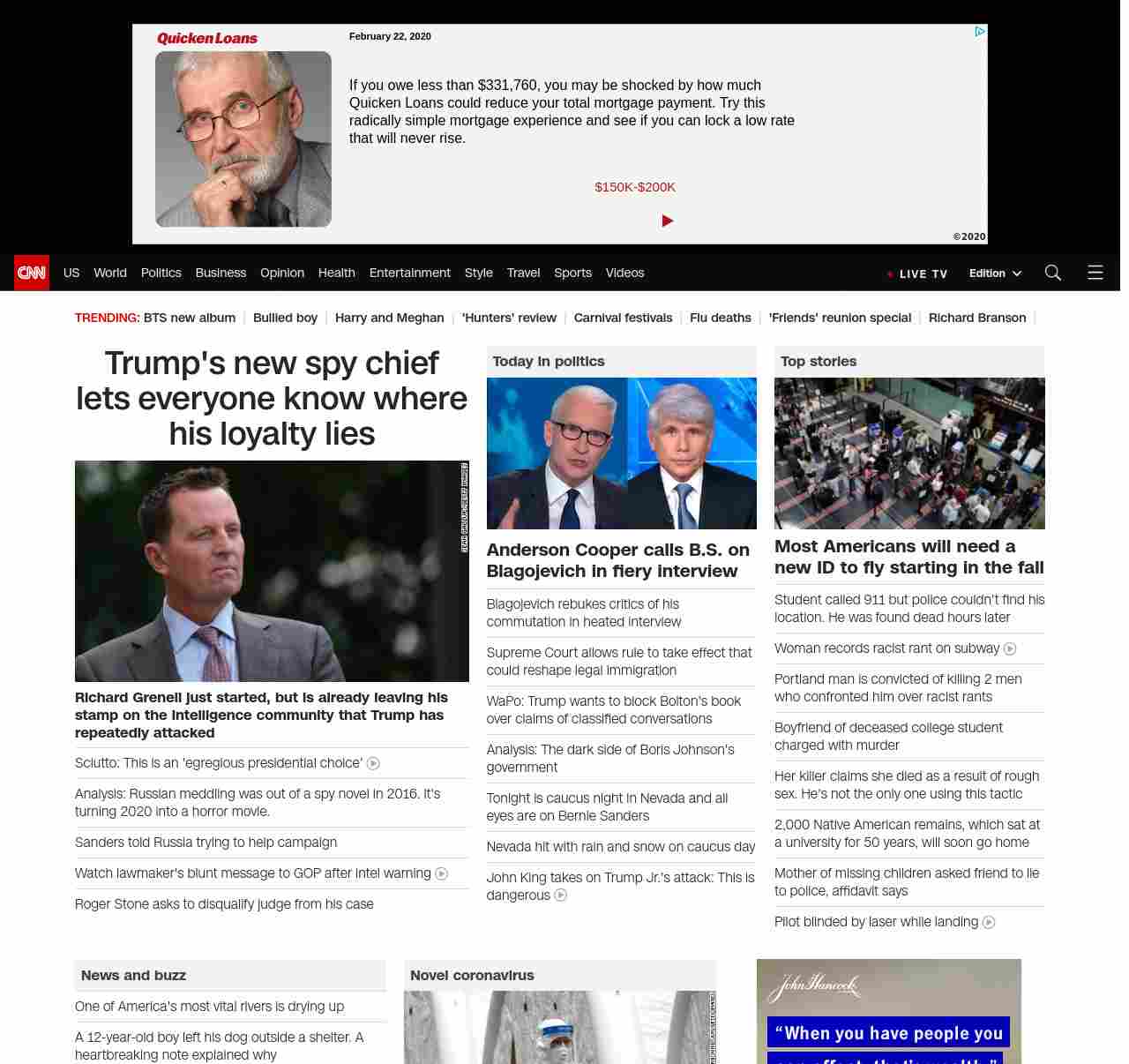 || screaming-banner-text banner-text-size–char-47″ data-analytics=”_list-hierarchical-xs_article_”> Trump’s new spy chief having an immediate impact ||” , title: “CNN – Breaking News, Latest News and Videos” , siblings: {“articleList”:[{“uri”:”/2020/02/22/politics/grenell-impact-diplomatic-community/index.html”,”headline”:”u003cstrong>Richard Grenell just started, but is already leaving his stamp on the intelligence community that Trump has repeatedly attackedu003c/strong>”,”thumbnail”:”//cdn.cnn.com/cnnnext/dam/assets/200221154039-02-richard-grenell-file-small-11.jpg”,”duration”:””,”description”:”Richard Grenell, the u003ca href=”https://www.cnn.com/2020/02/19/politics/trump-grennell-acting-dni/index.html” target=”_blank”>newly installedu003c/a> acting director of American spy agencies and loyalist to President Donald Trump, began his temporary tenure by moving aggressively to put his stamp on the intelligence community that Trump has repeatedly attacked. “,”layout”:””