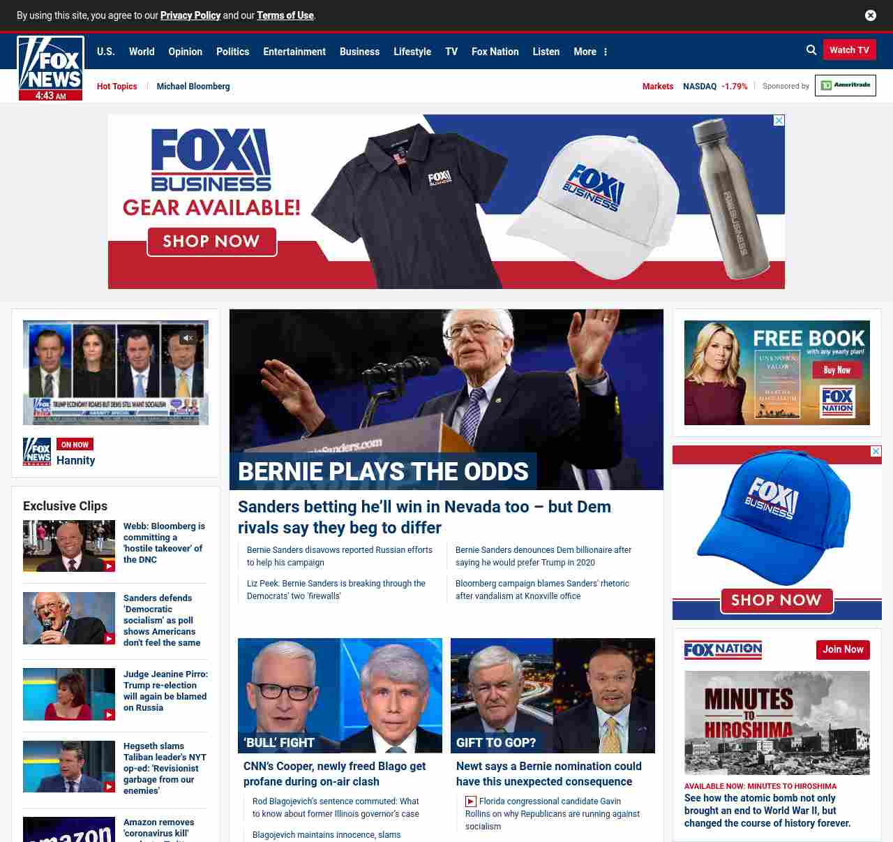 FN: [[BERNIE PLAYS THE ODDS]] Sanders betting he’ll win in Nevada too – but Dem rivals say they beg to differ ((lubuntu at wor2))