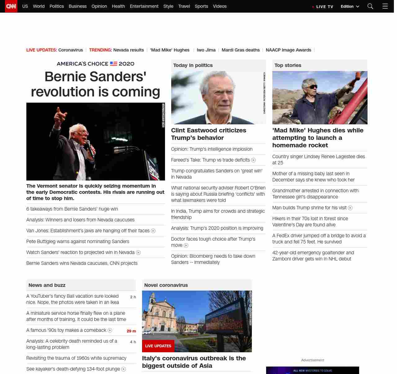 || screaming-banner-text banner-text-size–char-44″ data-analytics=”_list-hierarchical-xs_article_”> 6 takeaways from Bernie Sanders’ huge win ||” , title: “CNN – Breaking News, Latest News and Videos” , siblings: {“articleList”:[{“uri”:”/2020/02/23/politics/bernie-sanders-revolution-nevada/index.html”,”headline”:”u003cstrong>The Vermont senator is quickly seizing momentum in the early Democratic contests. His rivals are running out of time to stop him.u003c/strong>”,”thumbnail”:”//cdn.cnn.com/cnnnext/dam/assets/200222185747-03-bernie-sanders-0222-small-11.jpg”,”duration”:””,”description”:”u003ca href=”https://www.cnn.com/election/2020/candidate/sanders” target=”_blank”>Bernie Sandersu003c/a> left Las Vegas on Saturday morning in a light drizzle. By the time he arrived in San Antonio hours later, his path to the u003ca href=”https://www.cnn.com/election/2020/primaries-and-caucuses” target=”_blank”>Democratic nominationu003c/a> seemed as big and clear as the Texas sky.”,”layout”:””