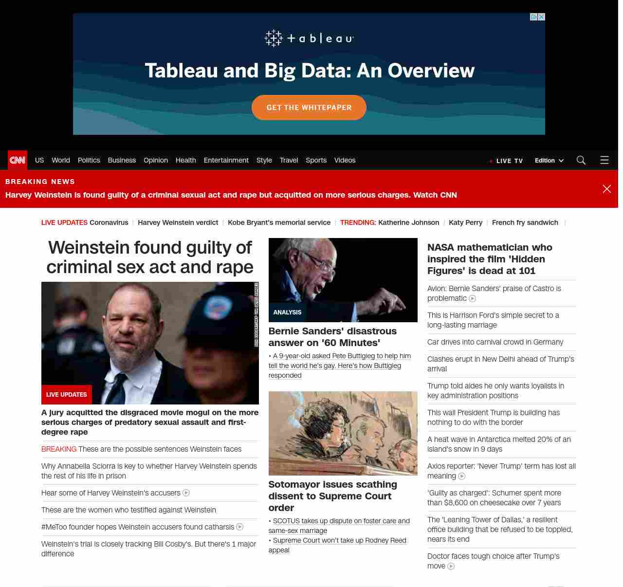 || screaming-banner-text banner-text-size–char-47″ data-analytics=”_list-hierarchical-xs_article_”> Weinstein found guilty of criminal sex act and rape ||” , title: “CNN – Breaking News, Latest News and Videos” , siblings: {“articleList”:[{“uri”:”/us/live-news/harvey-weinstein-verdict/index.html”,”headline”:”u003cstrong>A jury acquitted the disgraced movie mogul on the more serious charges of predatory sexual assault and first-degree rapeu003c/strong>”,”thumbnail”:”//cdn.cnn.com/cnnnext/dam/assets/200205144125-01-weinstein-file-small-11.jpg”,”duration”:””,”description”:””,”layout”:””