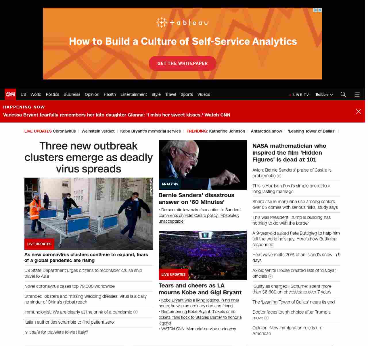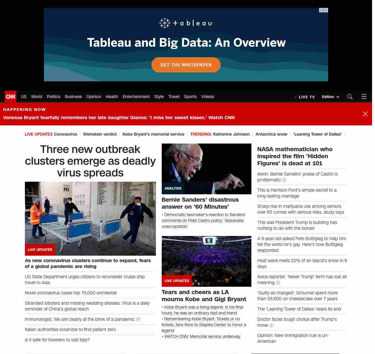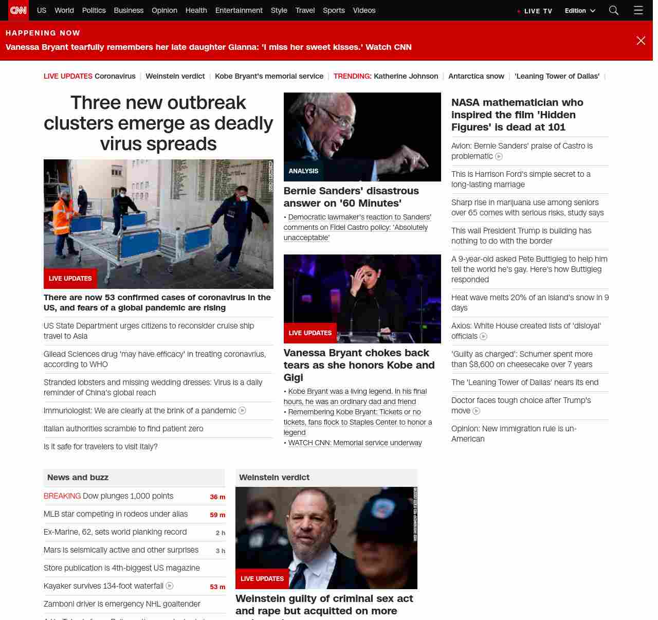 || screaming-banner-text banner-text-size–char-47″ data-analytics=”_list-hierarchical-xs_article_”> Three new outbreak clusters emerge as deadly virus spreads ||” , title: “CNN – Breaking News, Latest News and Videos” , siblings: {“articleList”:[{“uri”:”/asia/live-news/coronavirus-outbreak-02-24-20-hnk-intl/index.html”,”headline”:”u003cstrong>There are now 53 confirmed cases of coronavirus in the US, and fears of a global pandemic are risingu003c/strong>”,”thumbnail”:”//cdn.cnn.com/cnnnext/dam/assets/200224113110-01-coronavirus-italy-0221-small-11.jpg”,”duration”:””,”description”:””,”layout”:””