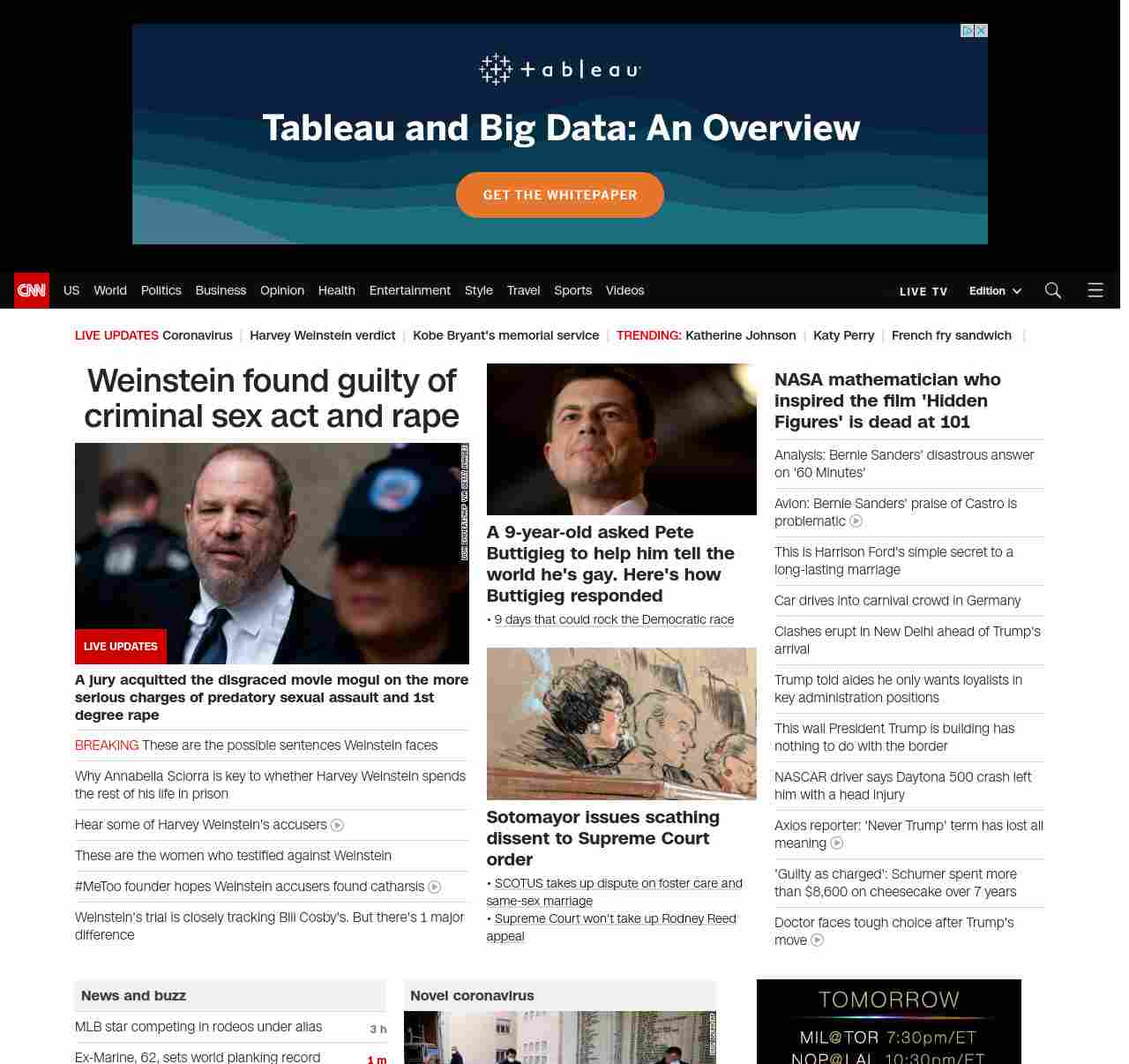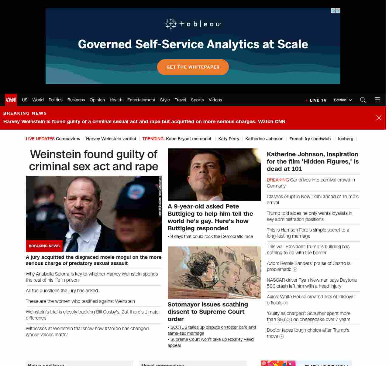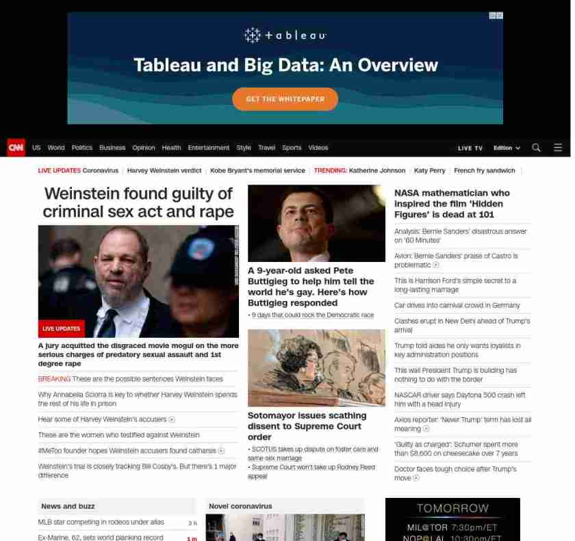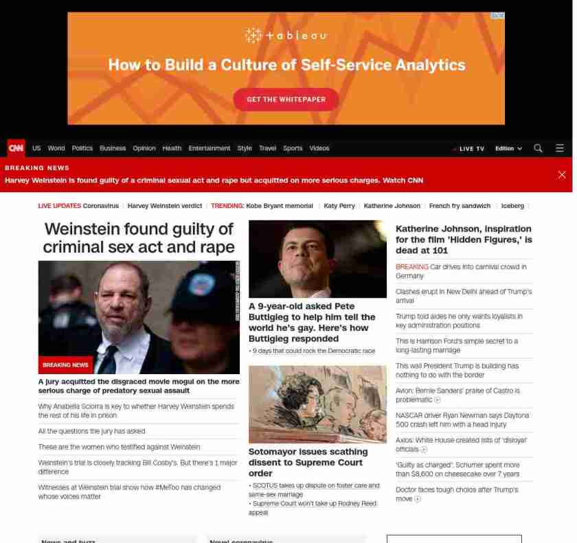 || screaming-banner-text banner-text-size–char-47″ data-analytics=”_list-hierarchical-xs_article_”> Weinstein found guilty of criminal sex act and rape ||” , title: “CNN – Breaking News, Latest News and Videos” , siblings: {“articleList”:[{“uri”:”/us/live-news/harvey-weinstein-verdict/index.html”,”headline”:”u003cstrong>A jury acquitted the disgraced movie mogul on the more serious charge of predatory sexual assault u003c/strong>”,”thumbnail”:”//cdn.cnn.com/cnnnext/dam/assets/200205144125-01-weinstein-file-small-11.jpg”,”duration”:””,”description”:””,”layout”:””