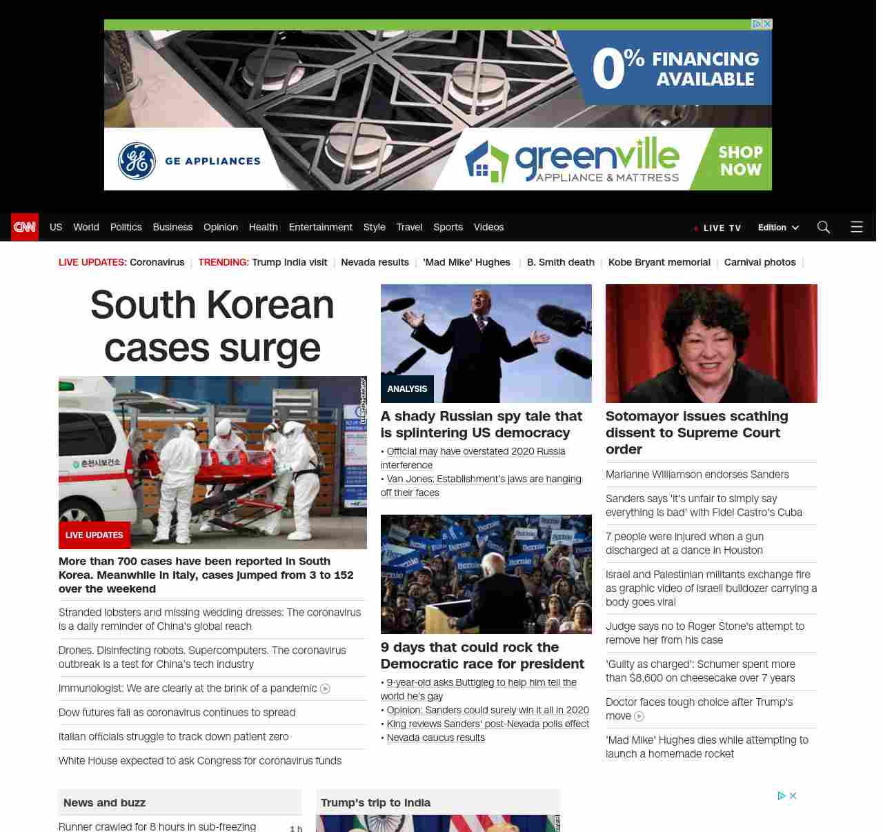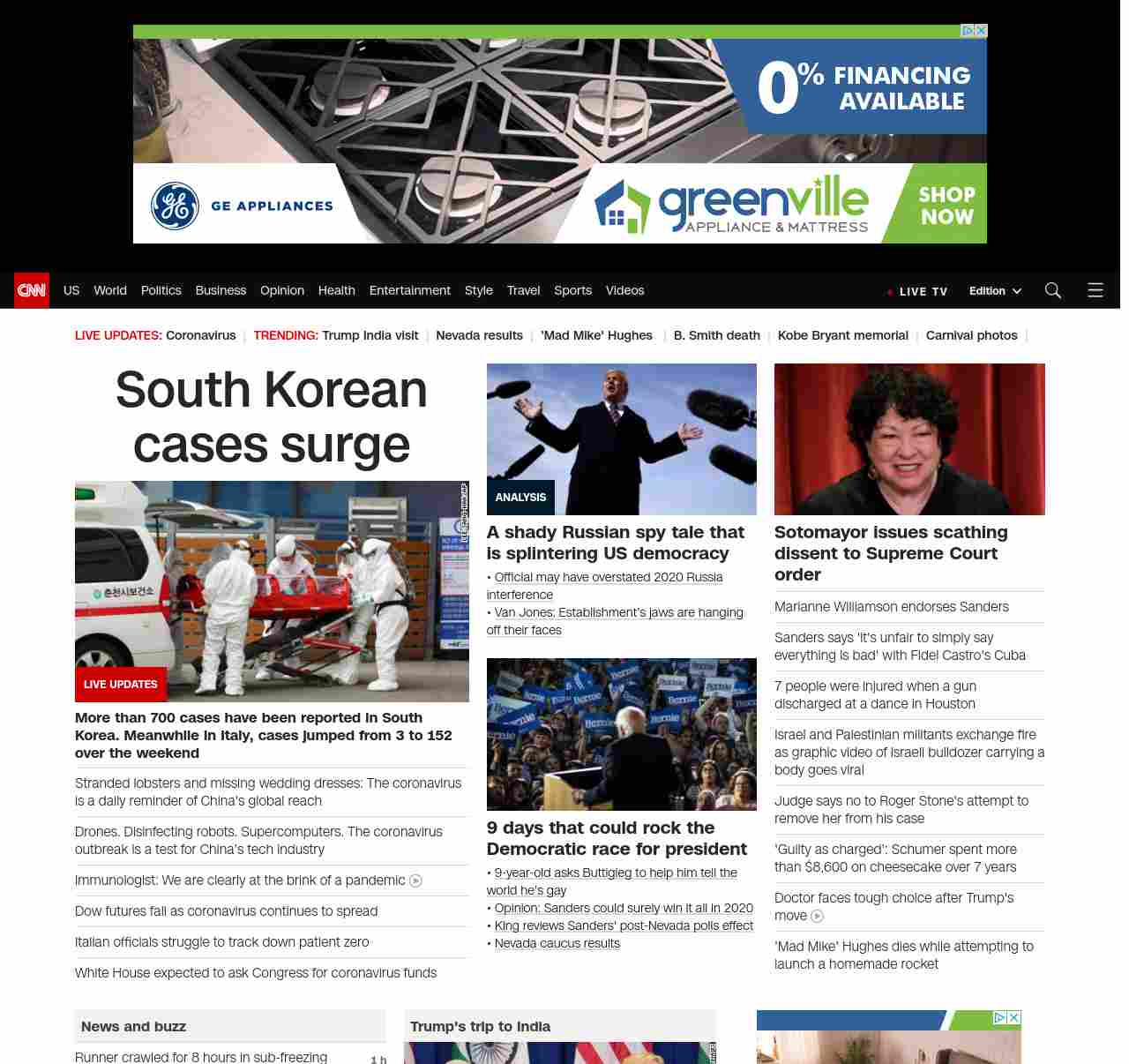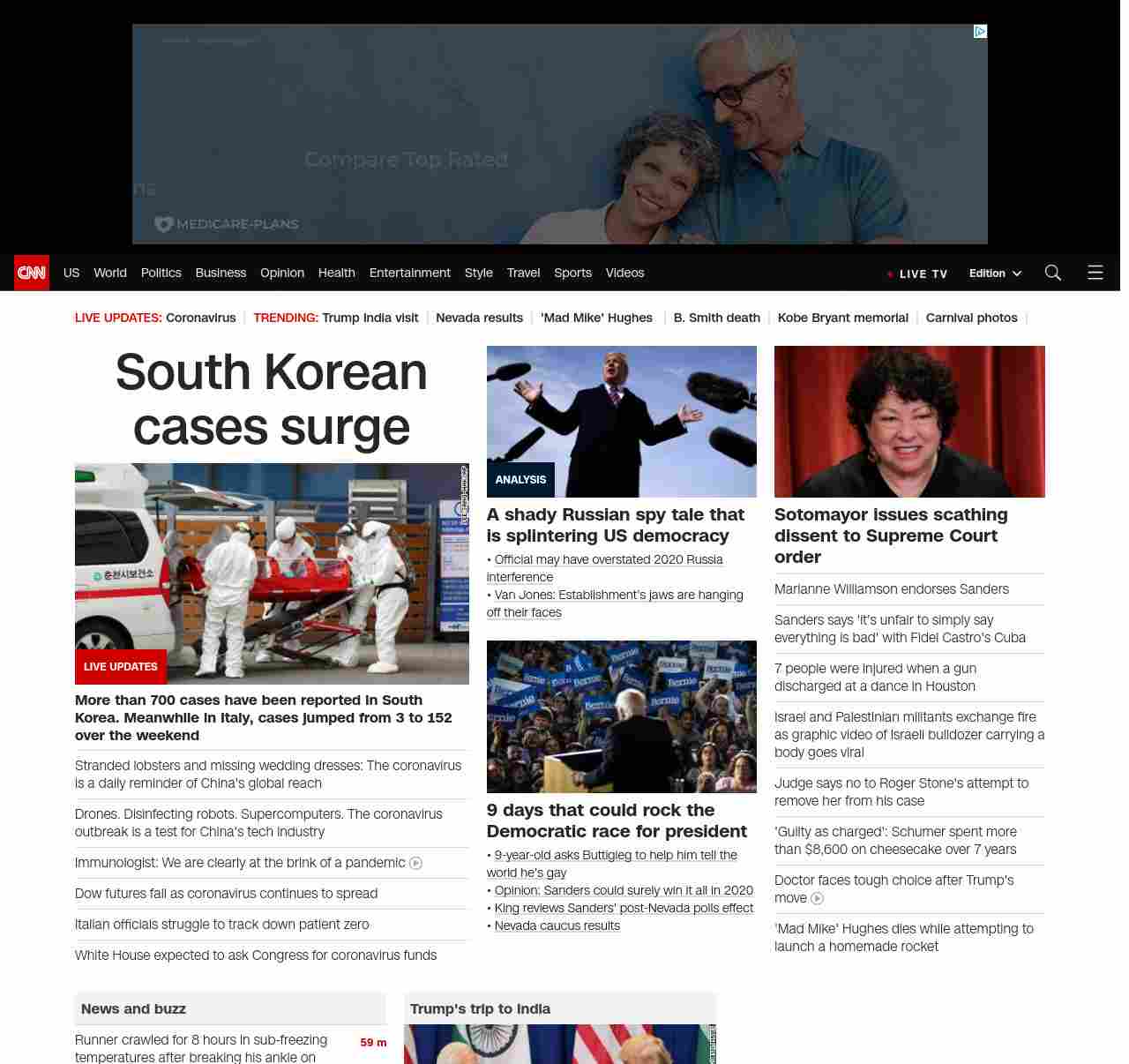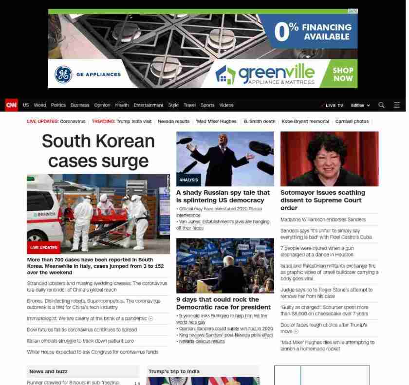 || screaming-banner-text banner-text-size–char-26″ data-analytics=”_list-hierarchical-xs_article_”> South Korean cases surge ||” , title: “CNN – Breaking News, Latest News and Videos” , siblings: {“articleList”:[{“uri”:”/asia/live-news/coronavirus-outbreak-02-24-20-hnk-intl/index.html”,”headline”:”u003cstrong>More than 700 cases have been reported in South Korea. Meanwhile in Italy, cases jumped from 3 to 152 over the weekendu003c/strong>”,”thumbnail”:”//cdn.cnn.com/cnnnext/dam/assets/200222220424-01-coronavirus-0222-south-korea-small-11.jpg”,”duration”:””,”description”:””,”layout”:””