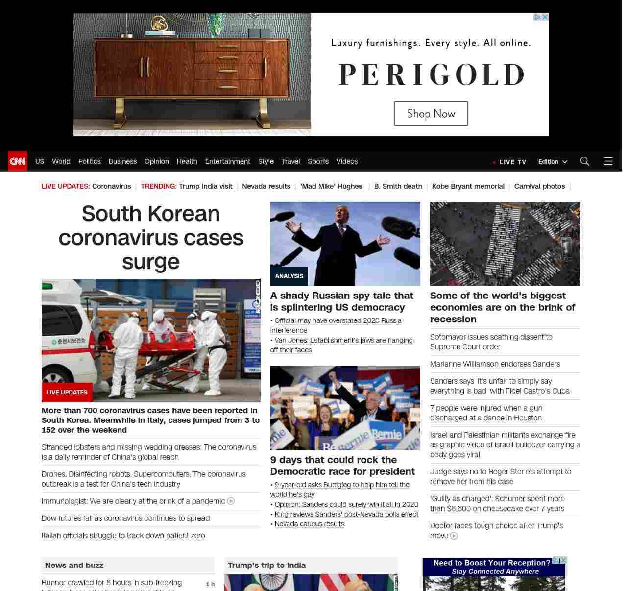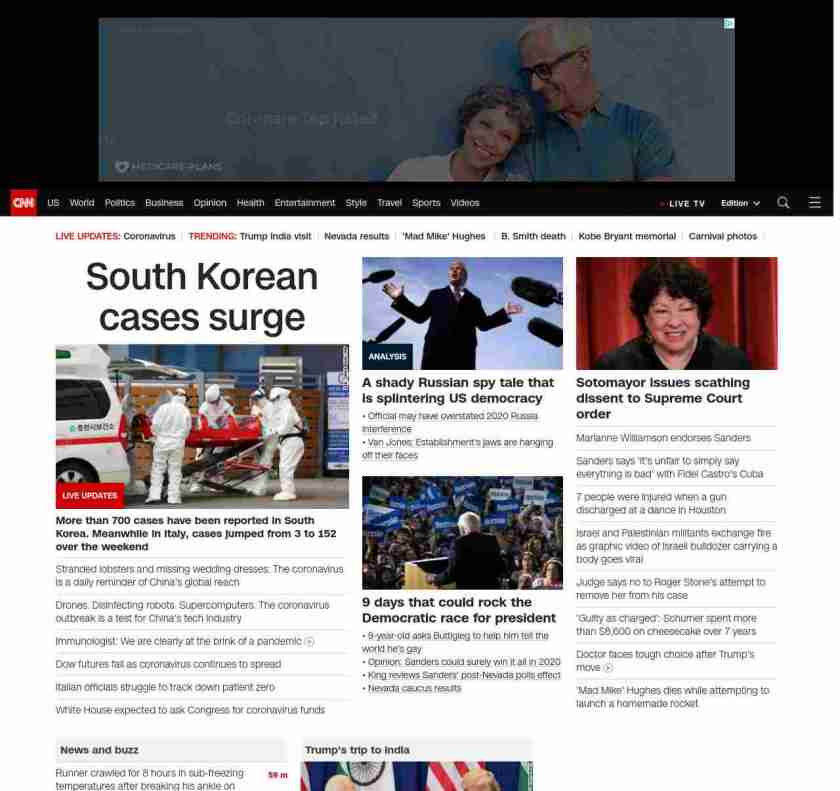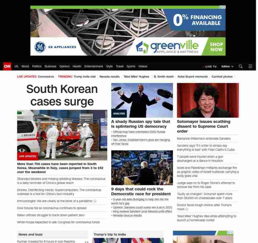 CNN3: “:”u003cstrong>More than 700 coronavirus cases have been reported in South Korea. Meanwhile in Italy, cases jumped from 3 to 152 over the weekendu003c/strong>”, “BANNER=|pagerendered| ((lubuntu at wor2))