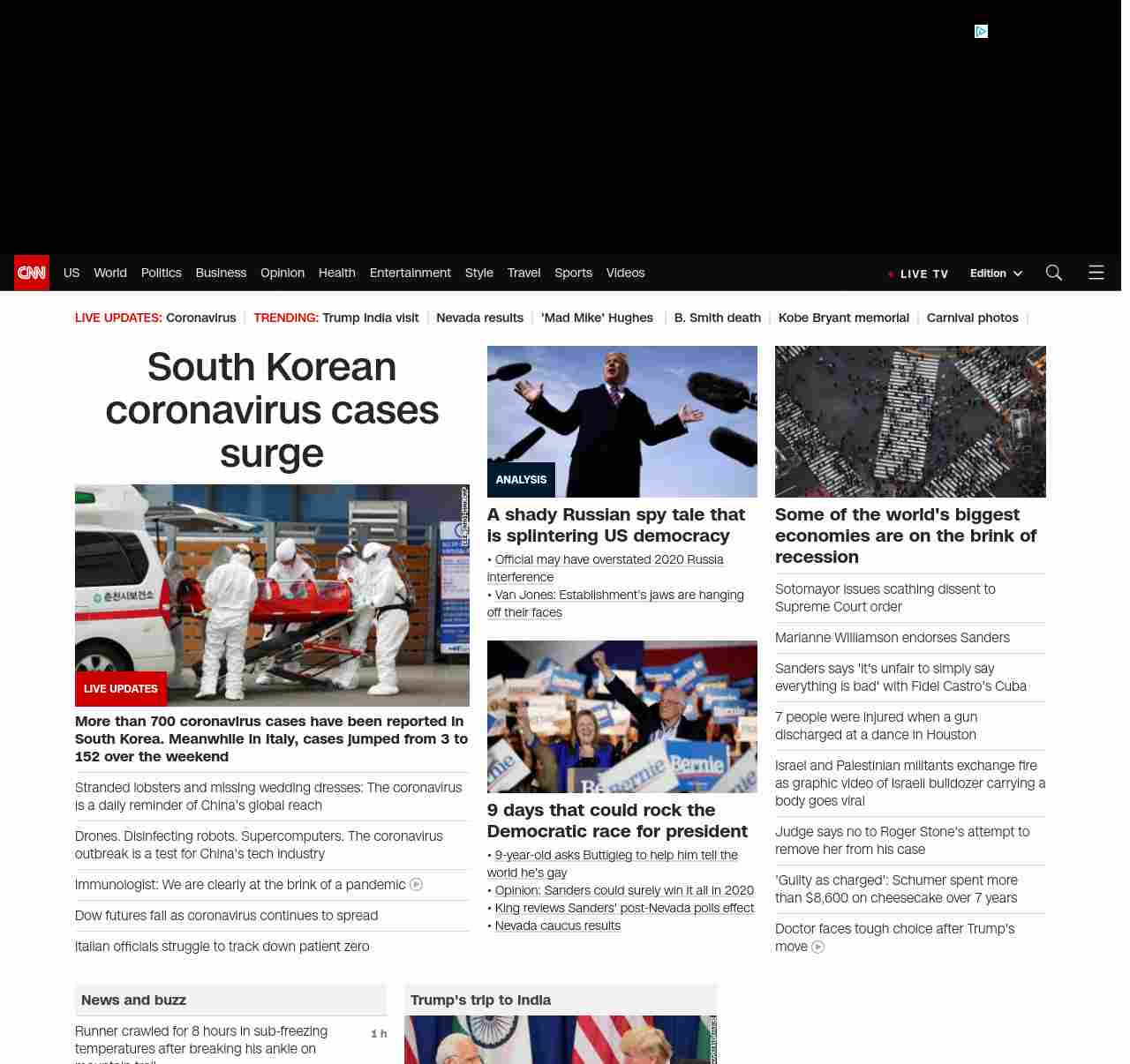CNN3: “:”u003cstrong>More than 700 cases have been reported in South Korea. Meanwhile in Italy, cases jumped from 3 to 152 over the weekendu003c/strong>”, “BANNER=|pagerendered| ((lubuntu at wor2))