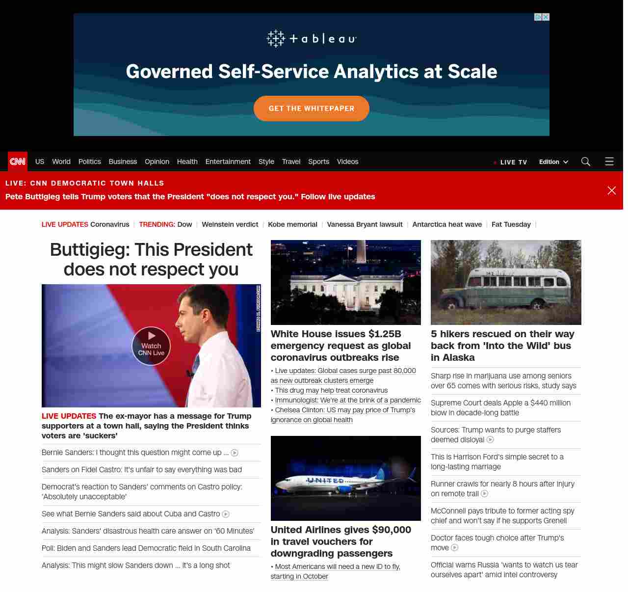 || screaming-banner-text banner-text-size–char-47″ data-analytics=”_list-hierarchical-xs_story_”> Buttigieg: This President does not respect you ||” , title: “CNN – Breaking News, Latest News and Videos” , siblings: {“articleList”:[{“uri”:”/politics/live-news/2020-democratic-town-hall-south-carolina-monday/index.html”,”headline”:”u003cstrong>The ex-mayor has a message for Trump supporters at a town hall, saying the President thinks voters are ‘suckers’u003c/strong>”,”thumbnail”:”//cdn.cnn.com/cnnnext/dam/assets/200224221049-09-cnn-town-hall-0224-buttigieg-small-11.jpg”,”duration”:””,”description”:””,”layout”:””