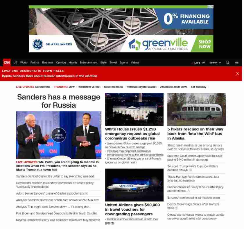 || screaming-banner-text banner-text-size–char-35″ data-analytics=”_list-hierarchical-xs_story_”> Sanders has a message for Russia ||” , title: “CNN – Breaking News, Latest News and Videos” , siblings: {“articleList”:[{“uri”:”/politics/live-news/2020-democratic-town-hall-south-carolina-monday/index.html”,”headline”:”u003cstrong>’Mr. Putin, you aren’t going to meddle in elections when I’m President,’ the senator says as he blasts Trump at a town hall u003c/strong>”,”thumbnail”:”//cdn.cnn.com/cnnnext/dam/assets/200224212335-06-cnn-town-hall-0224-sanders-small-11.jpg”,”duration”:””,”description”:””,”layout”:””