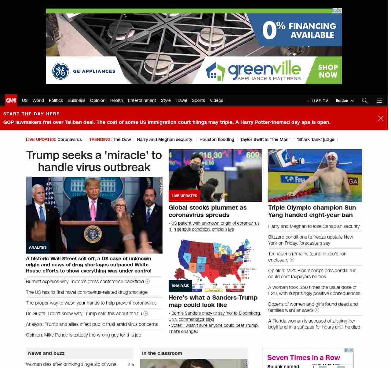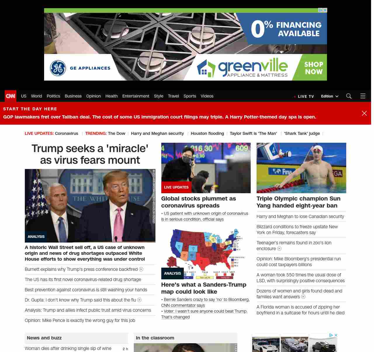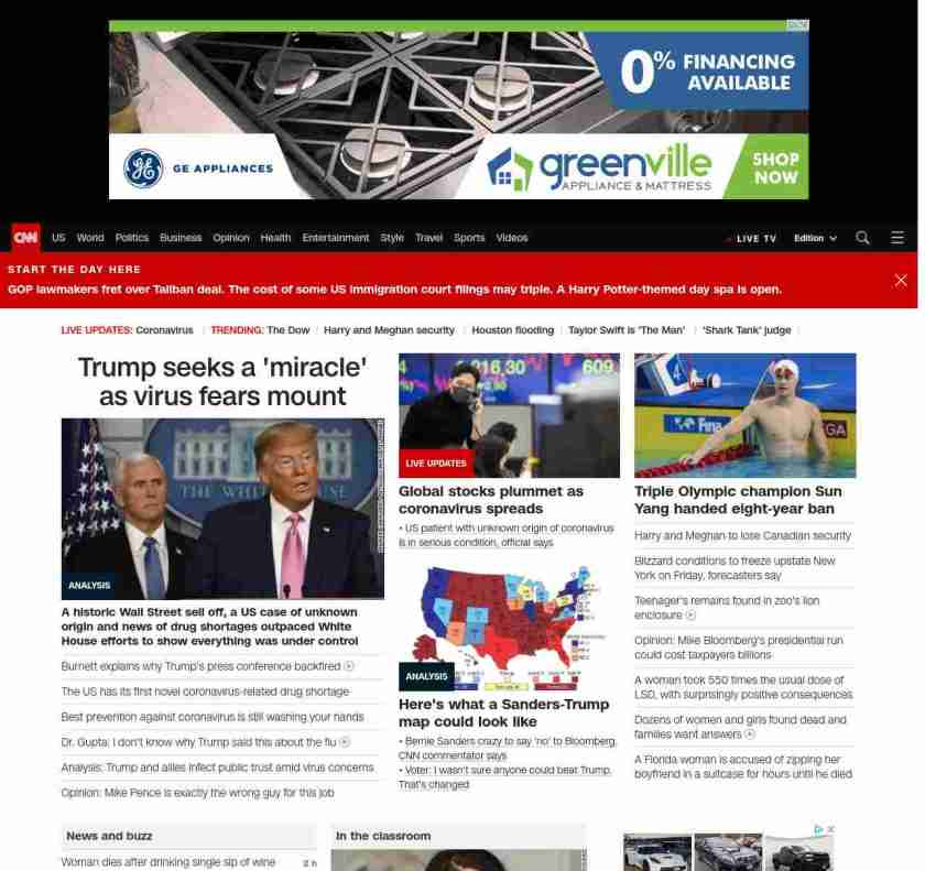 || screaming-banner-text banner-text-size–char-47″ data-analytics=”_list-hierarchical-xs_article_”> Trump seeks a ‘miracle’ as virus fears mount ||” , title: “CNN – Breaking News, Latest News and Videos” , siblings: {“articleList”:[{“uri”:”/2020/02/28/politics/donald-trump-coronavirus-miracle-stock-markets/index.html”,”headline”:”u003cstrong>A historic Wall Street sell off, a US case of unknown origin and news of drug shortages outpaced White House efforts to show everything was under controlu003c/strong>”,”thumbnail”:”//cdn.cnn.com/cnnnext/dam/assets/200228074701-01-trump-coronavirus-presser-0226-small-11.jpg”,”duration”:””,”description”:”u003ca href=”https://www.cnn.com/election/2020/candidate/trump” target=”_blank”>President Donald Trumpu003c/a> is hoping for a “miracle” that u003ca href=”https://www.cnn.com/2020/02/27/politics/trump-coronavirus-disappear/index.html” target=”_blank”>will make the coronavirus disappear u003c/a>but u003ca href=”https://www.cnn.com/2020/02/27/investing/dow-stock-market-selloff/index.html” target=”_blank”>tanking stock marketsu003c/a> and signs u003ca href=”https://www.cnn.com/2020/02/27/health/coronavirus-community-spread-us-response-explainer/index.html” target=”_blank”>the disease is stalking Americau003c/a> are delivering their verdict on his scattershot management of the crisis.”,”layout”:””