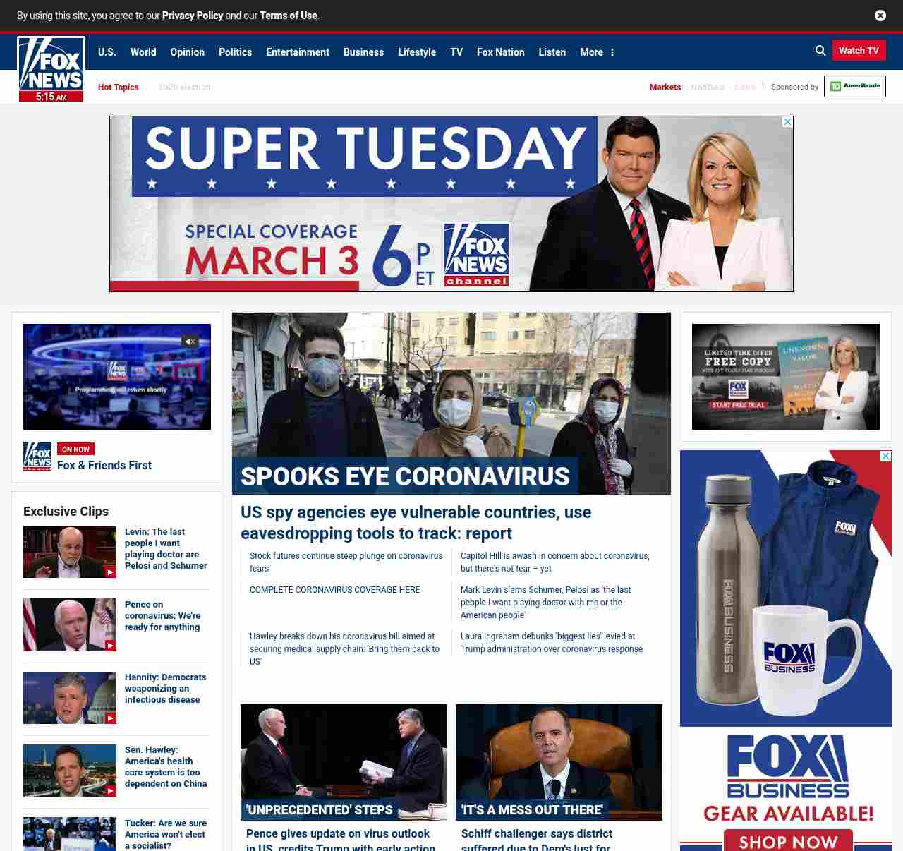 FN: [[SPOOKS EYE CORONAVIRUS]] US spy agencies monitor vulnerable countries, use eavesdropping tools to track: report ((lubuntu at wor2))