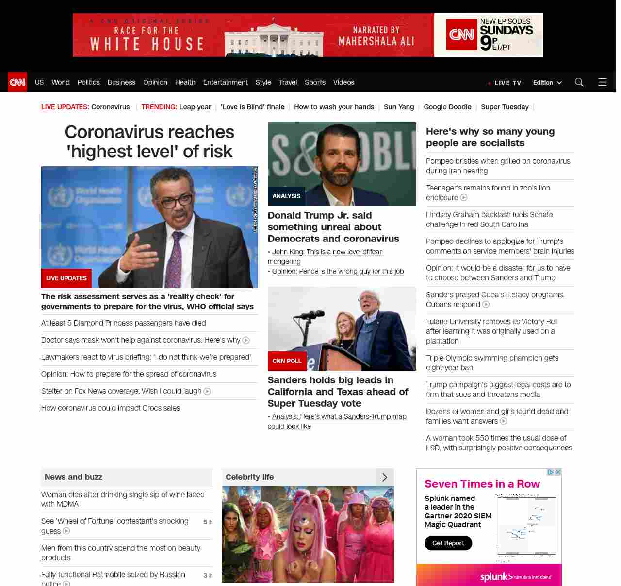 || screaming-banner-text banner-text-size–char-44″ data-analytics=”_list-hierarchical-xs_hyperlink_”> Coronavirus reaches ‘highest level’ of risk ||” , title: “CNN – Breaking News, Latest News and Videos” , siblings: {“articleList”:[{“uri”:”/videos/health/2020/02/28/coronavirus-questions-doctor-patel-acfc-sot-vpx.cnn”,”headline”:”Doctor says mask won’t help against coronavirus. Here’s why”,”thumbnail”:”//cdn.cnn.com/cnnnext/dam/assets/200226233701-21-coronavirus-prevention-small-11.jpg”,”duration”:”02:01″,”description”:”A new case of coronavirus in California “marks a turning point,” according to the state’s public health director, because the patient has no related travel history and no known exposure to coronavirus. Dr. Alok Patel joins Anderson Cooper to answer your coronavirus questions live. Watch “Full Circle” weeknights at 5 p.m. ET. “,”layout”:””,”iconType”:”video”