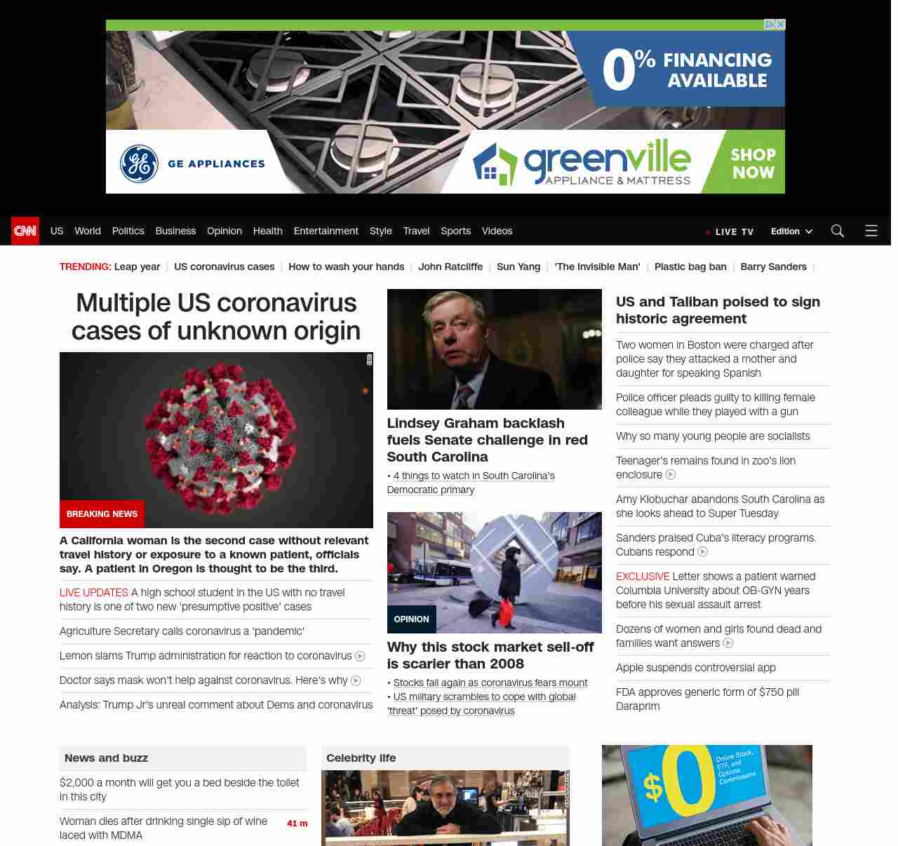 || screaming-banner-text banner-text-size–char-47″ data-analytics=”_list-hierarchical-xs_hyperlink_”> New US novel coronavirus case is student with no travel history ||” , title: “CNN – Breaking News, Latest News and Videos” , siblings: {“articleList”:[{“uri”:”/videos/politics/2020/02/29/coronavirus-trump-white-house-response-dons-take-ctn-sot-vpx.cnn”,”headline”:”Lemon slams Trump administration for reaction to coronavirus”,”thumbnail”:”//cdn.cnn.com/cnnnext/dam/assets/200228230410-don-lemon-ctn-dons-take-022819-small-11.jpg”,”duration”:”07:18″,”description”:”CNN’s Don Lemon breaks down the “lackluster response” from President Trump and White House officials to coronavirus and massive losses in the stock market.”,”layout”:””,”iconType”:”video”