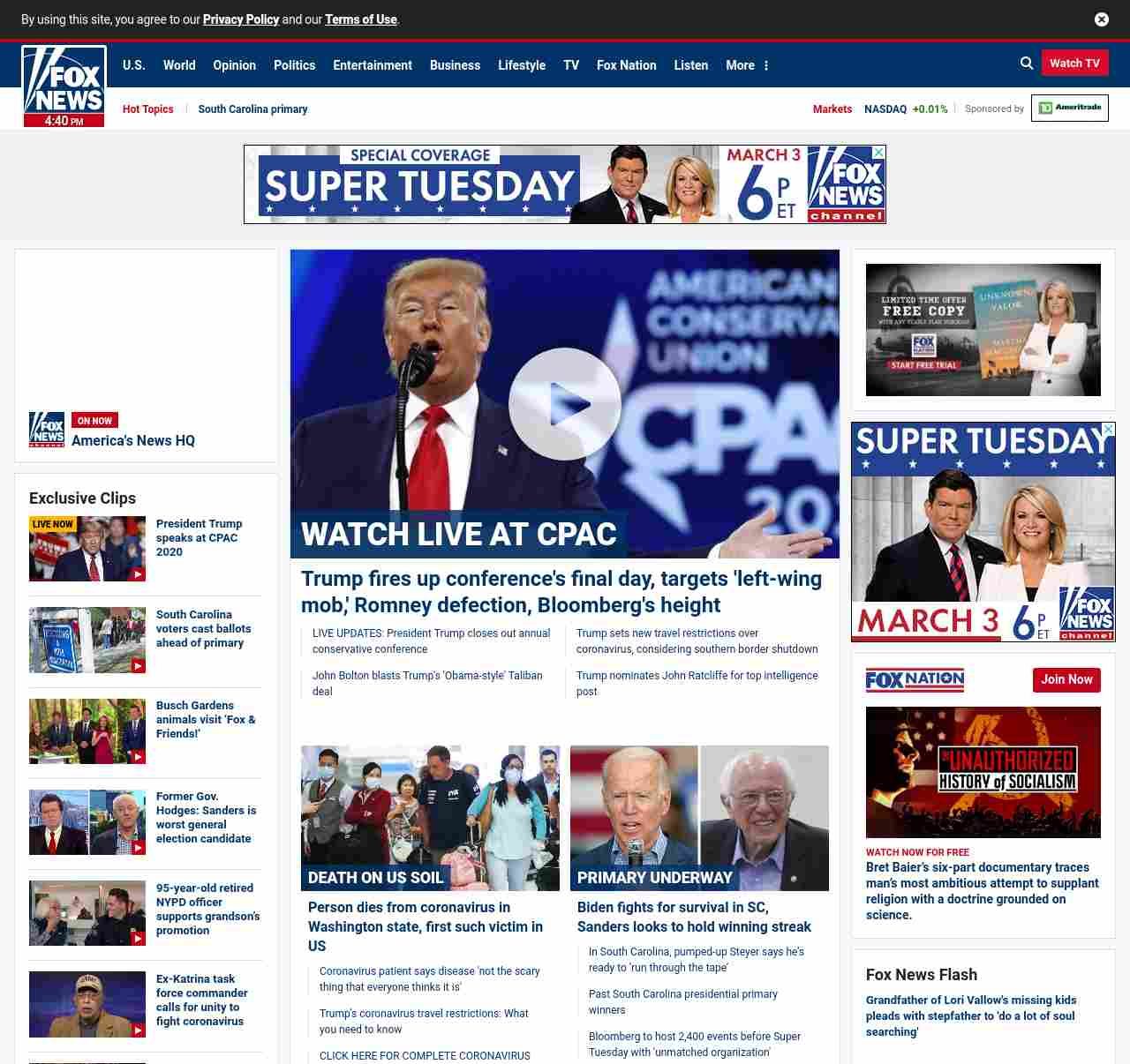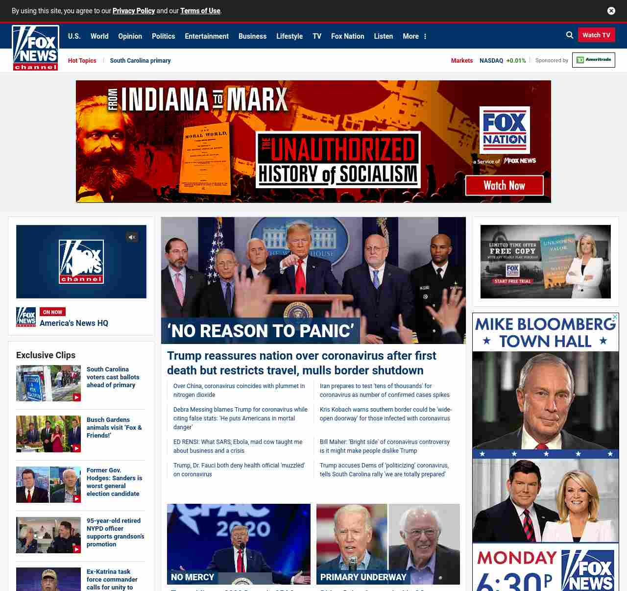 FN: [[‘NO REASON TO PANIC’]] Trump reassures nation over coronavirus after first death but restricts travel, mulls border shutdown ((lubuntu at wor2))