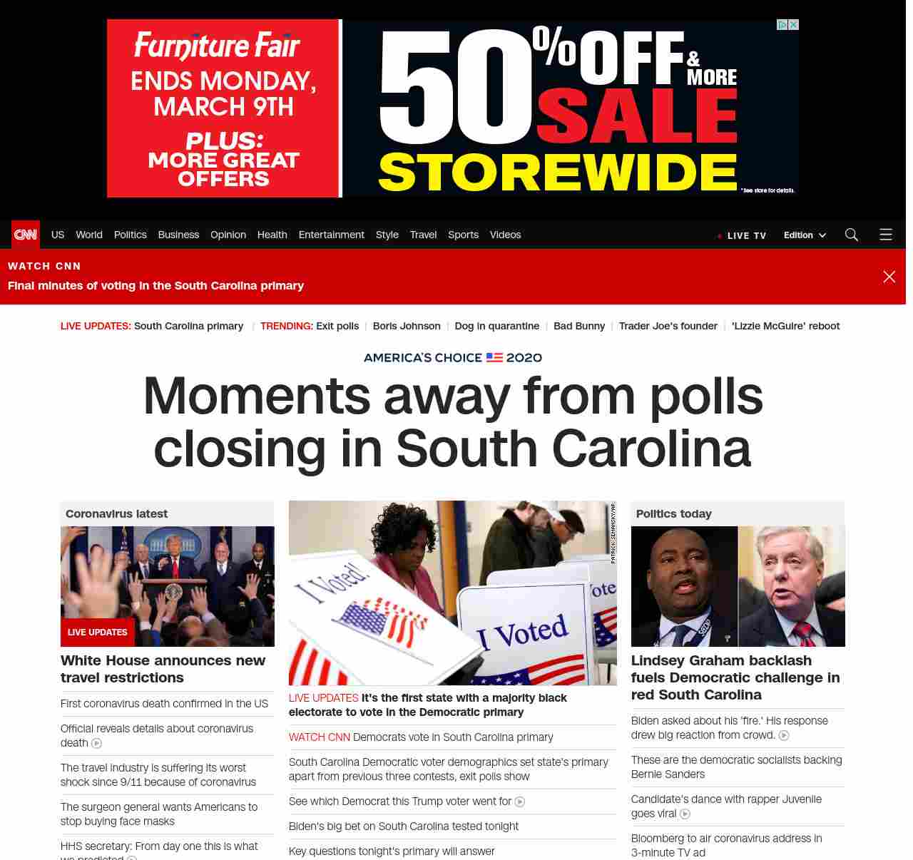 CNN1: FOXVCNN=|banner-text–natural”> Moments away from polls closing in South Carolina| ((lubuntu at wor2))