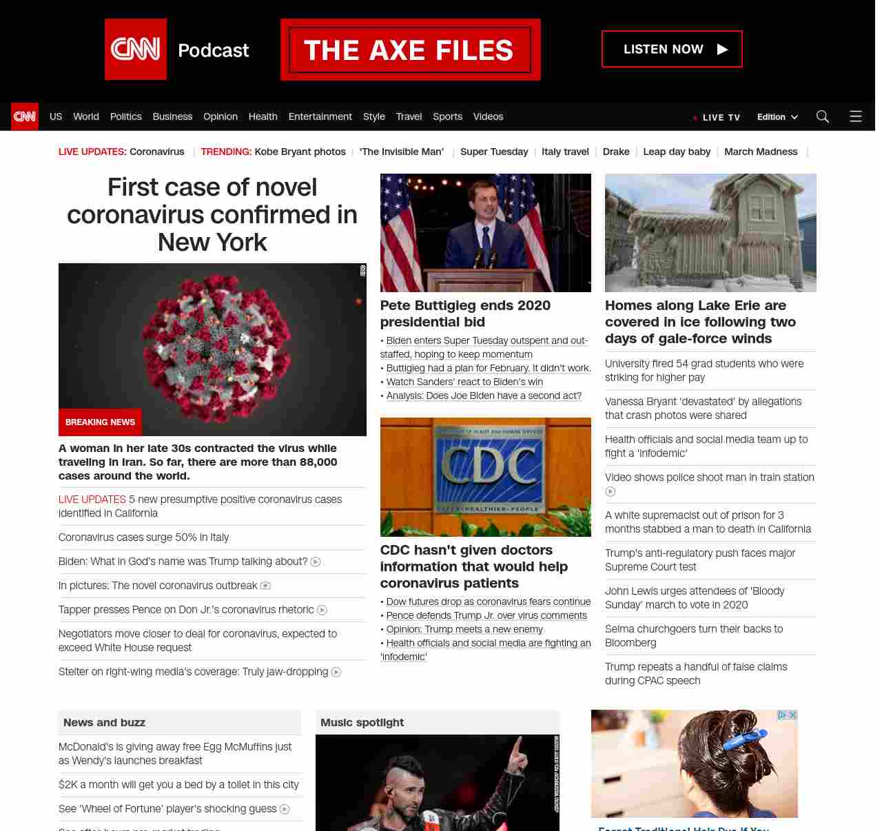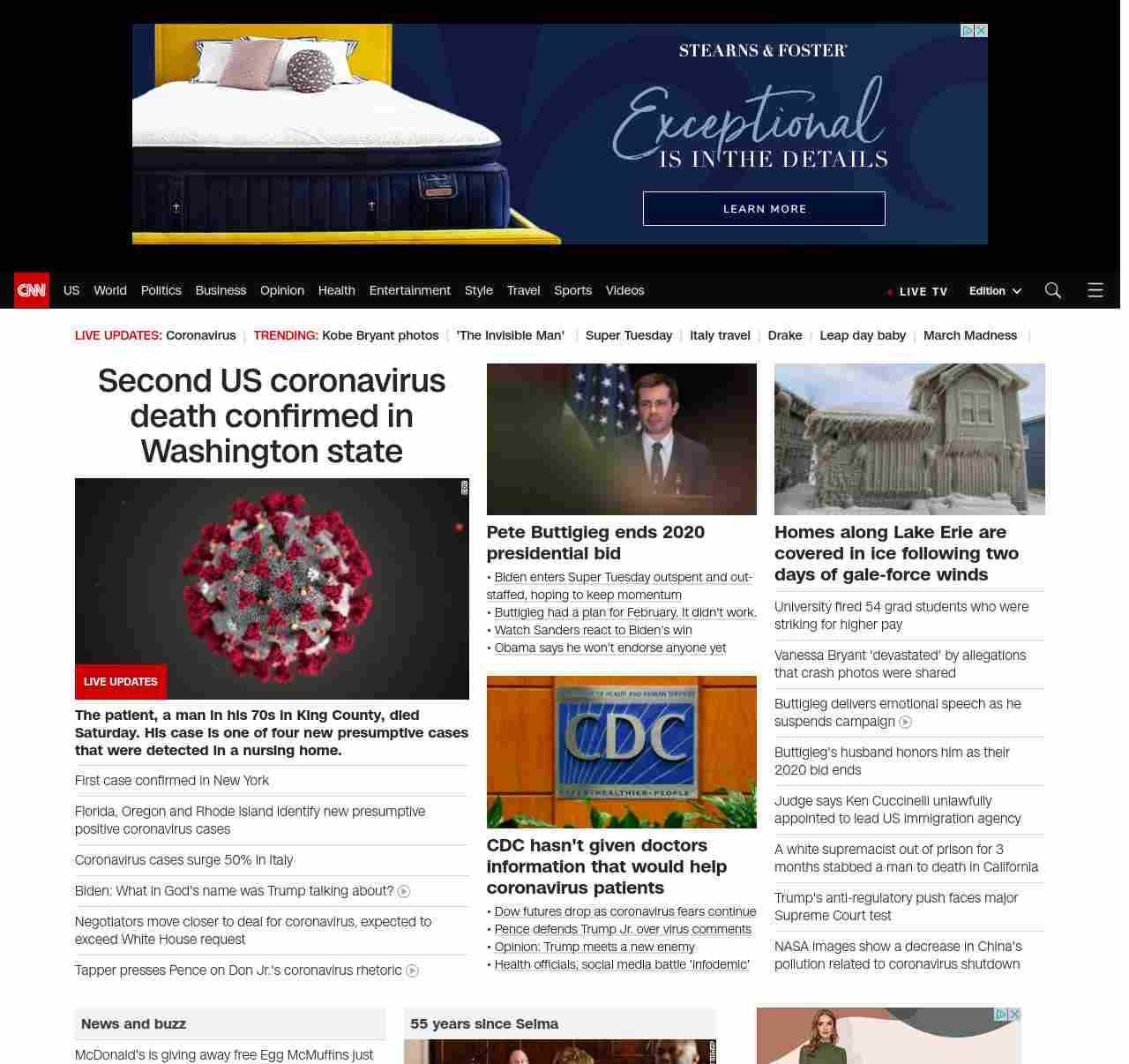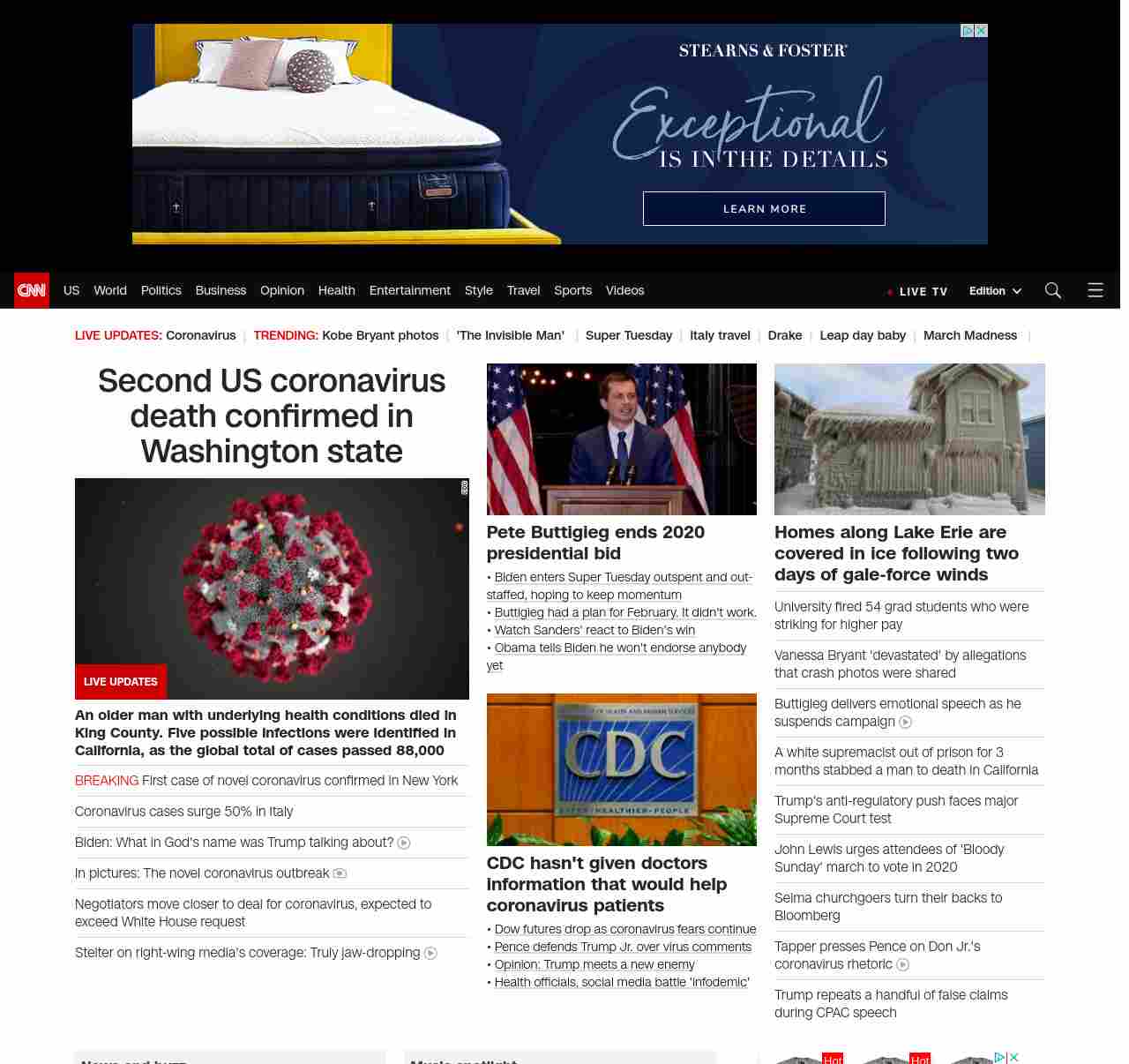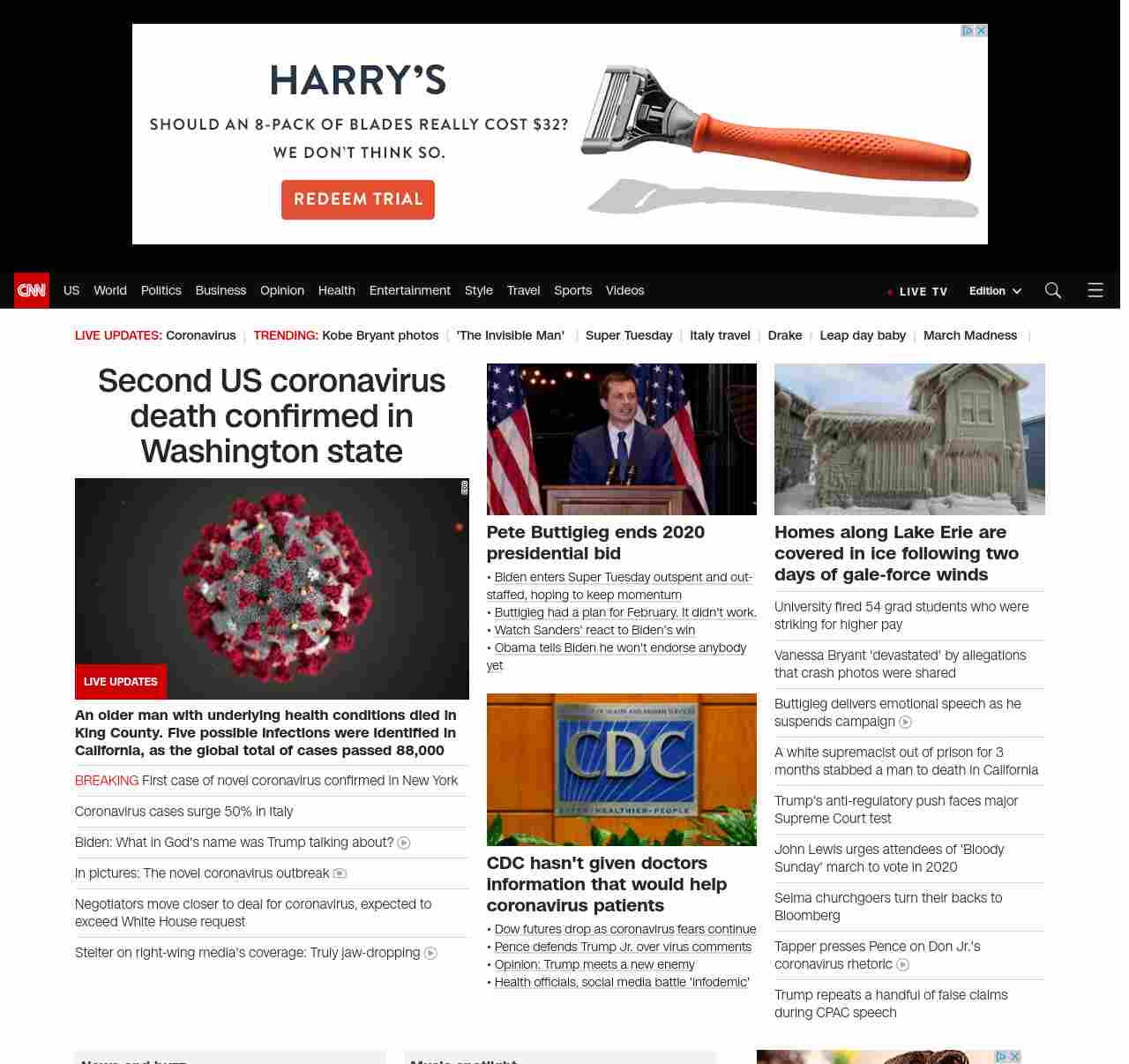 || screaming-banner-text banner-text-size–char-47″ data-analytics=”_list-hierarchical-xs_hyperlink_”> Second US coronavirus death confirmed in Washington state ||” , title: “CNN – Breaking News, Latest News and Videos” , siblings: {“articleList”:[{“uri”:”/asia/live-news/coronavirus-outbreak-03-02-20-intl-hnk/index.html”,”headline”:”Global coronavirus death toll tops 3,000″,”thumbnail”:”//cdn.cnn.com/cnnnext/dam/assets/200301124725-01-coronavirus-italy-0228-small-11.jpg”,”duration”:””,”description”:””,”layout”:””