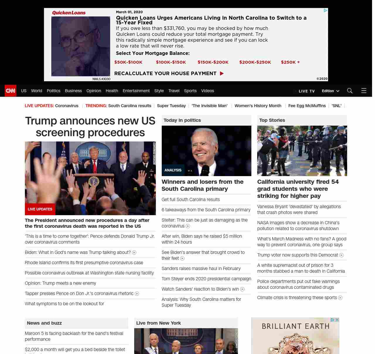 || screaming-banner-text banner-text-size–char-44″ data-analytics=”_list-hierarchical-xs_hyperlink_”> Trump announces new US screening procedures ||” , title: “CNN – Breaking News, Latest News and Videos” , siblings: {“articleList”:[{“uri”:”/2020/03/01/politics/mike-pence-political-coronavirus-rhetoric-cnntv/index.html”,”headline”:”‘This is a time to come together’: Pence defends Donald Trump Jr. over coronavirus comments”,”thumbnail”:”//cdn.cnn.com/cnnnext/dam/assets/191001101809-01-mike-pence-0930-small-11.jpg”,”duration”:””,”description”:”u003ca href=”https://www.cnn.com/videos/politics/2020/03/01/mike-pence-coronavirus-don-jr-fox-news-jake-tapper-sotu-vpx.cnn” target=”_blank”>Vice President Mike Pence on Sunday defended Donald Trump Jr.u003c/a> after his controversial comments about how Democrats have responded to the Trump administration’s handling of the coronavirus.”,”layout”:””