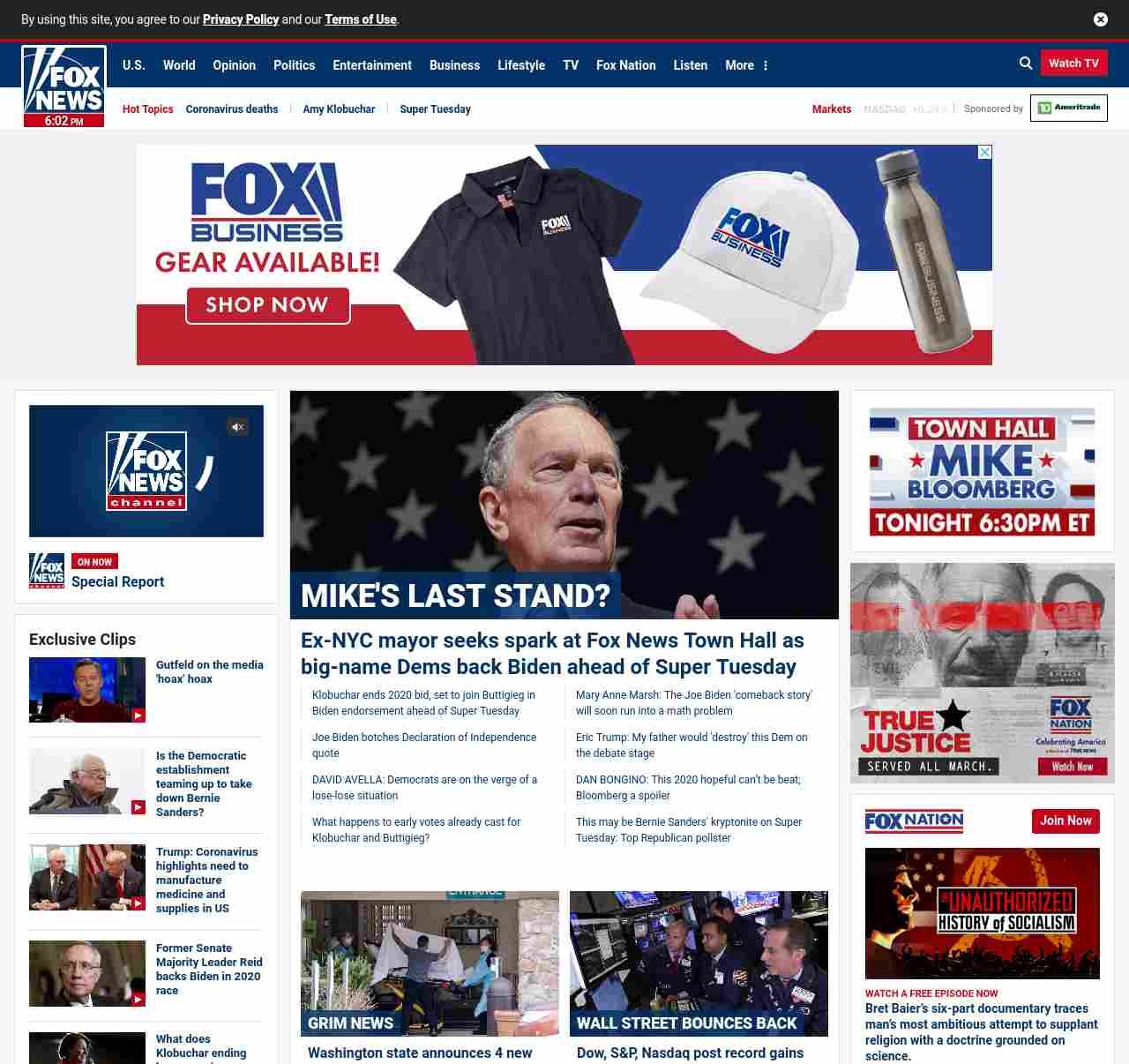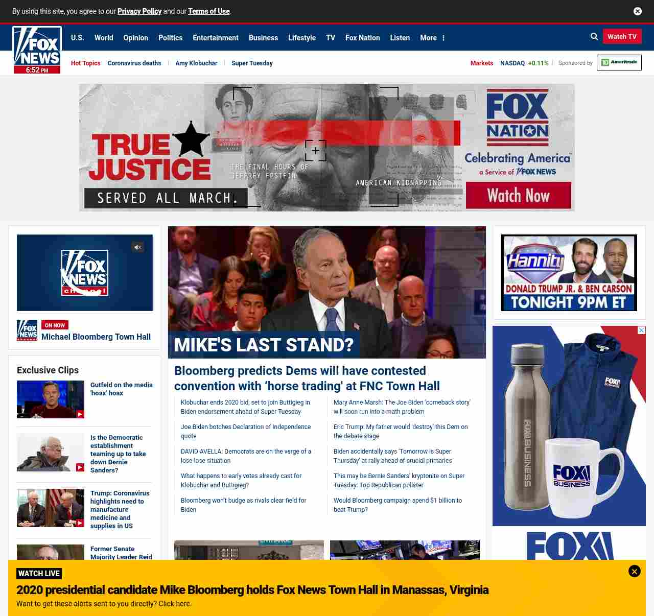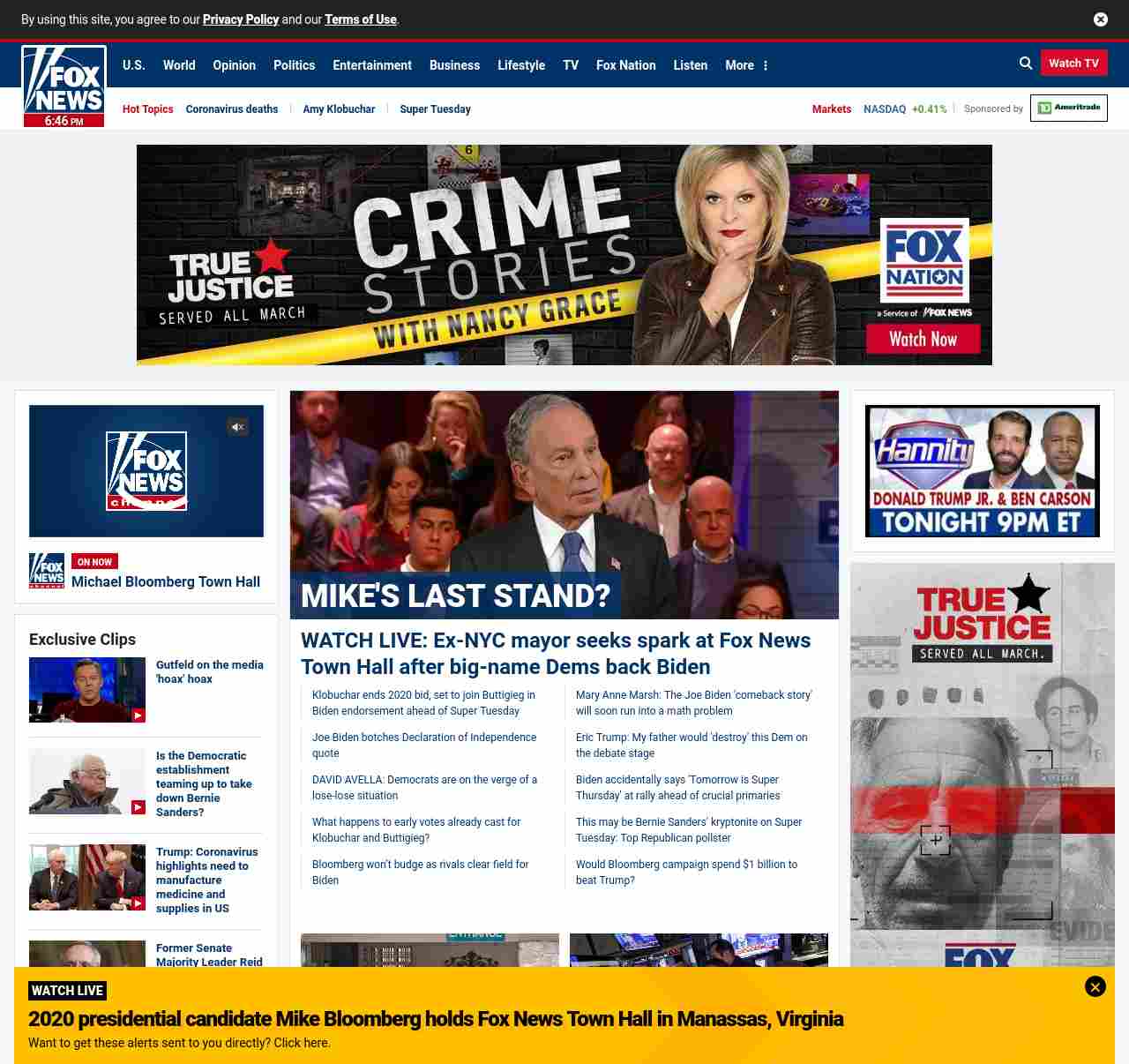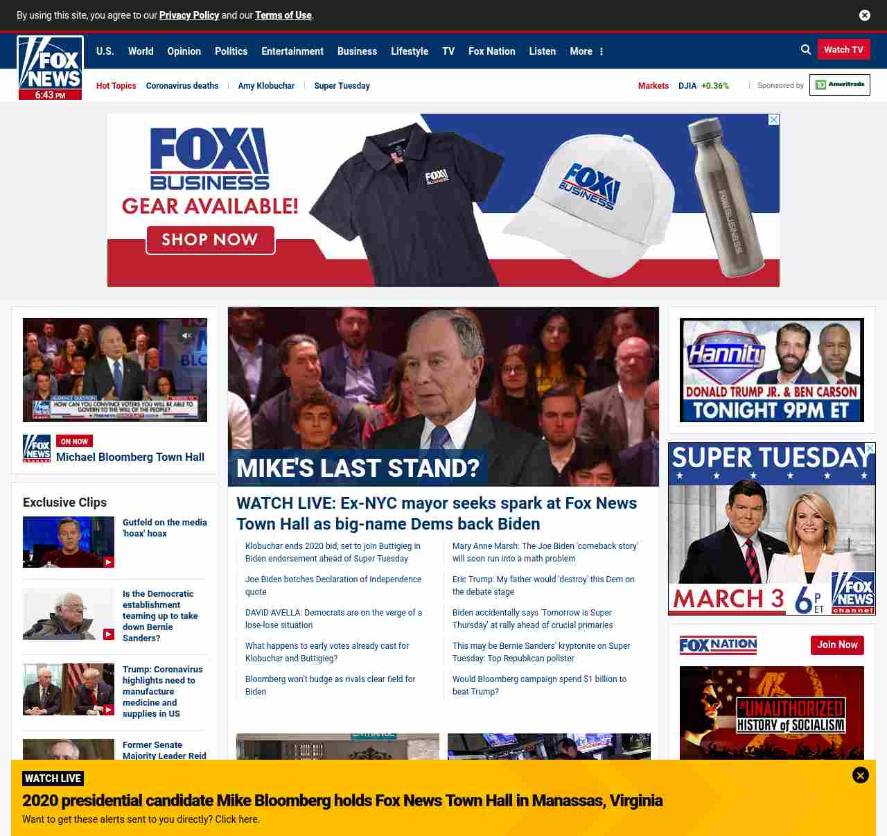 FN: [[MIKE' S LAST STAND?]] Ex-NYC mayor seeks spark at Fox News Town Hall as big-name Dems back Biden ahead of Super Tuesday ((lubuntu at wor2))