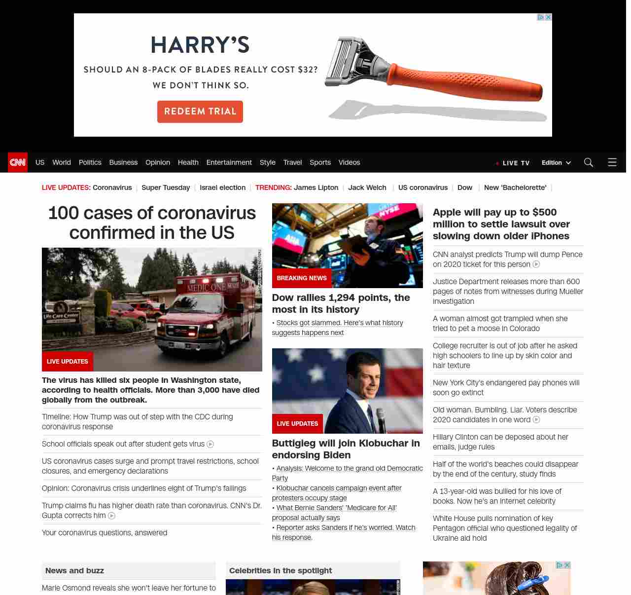 || screaming-banner-text banner-text-size–char-47″ data-analytics=”_list-hierarchical-xs_hyperlink_”> 100 cases of coronavirus confirmed in the US ||” , title: “CNN – Breaking News, Latest News and Videos” , siblings: {“articleList”:[{“uri”:”/videos/health/2020/03/02/coronavirus-case-washington-school-closed-cleaning-bts-tsr-vpx.cnn”,”headline”:”School officials speak out after student gets virus”,”thumbnail”:”//cdn.cnn.com/cnnnext/dam/assets/200302175002-everett-washington-school-coronavirus-case-officials-tsr-intv-03022020-small-11.jpg”,”duration”:”02:40″,”description”:”CNN’s Wolf Blitzer speaks to two Washington state school officials about how the district is dealing with one of their students testing positive to coronavirus.”,”layout”:””,”iconType”:”video”