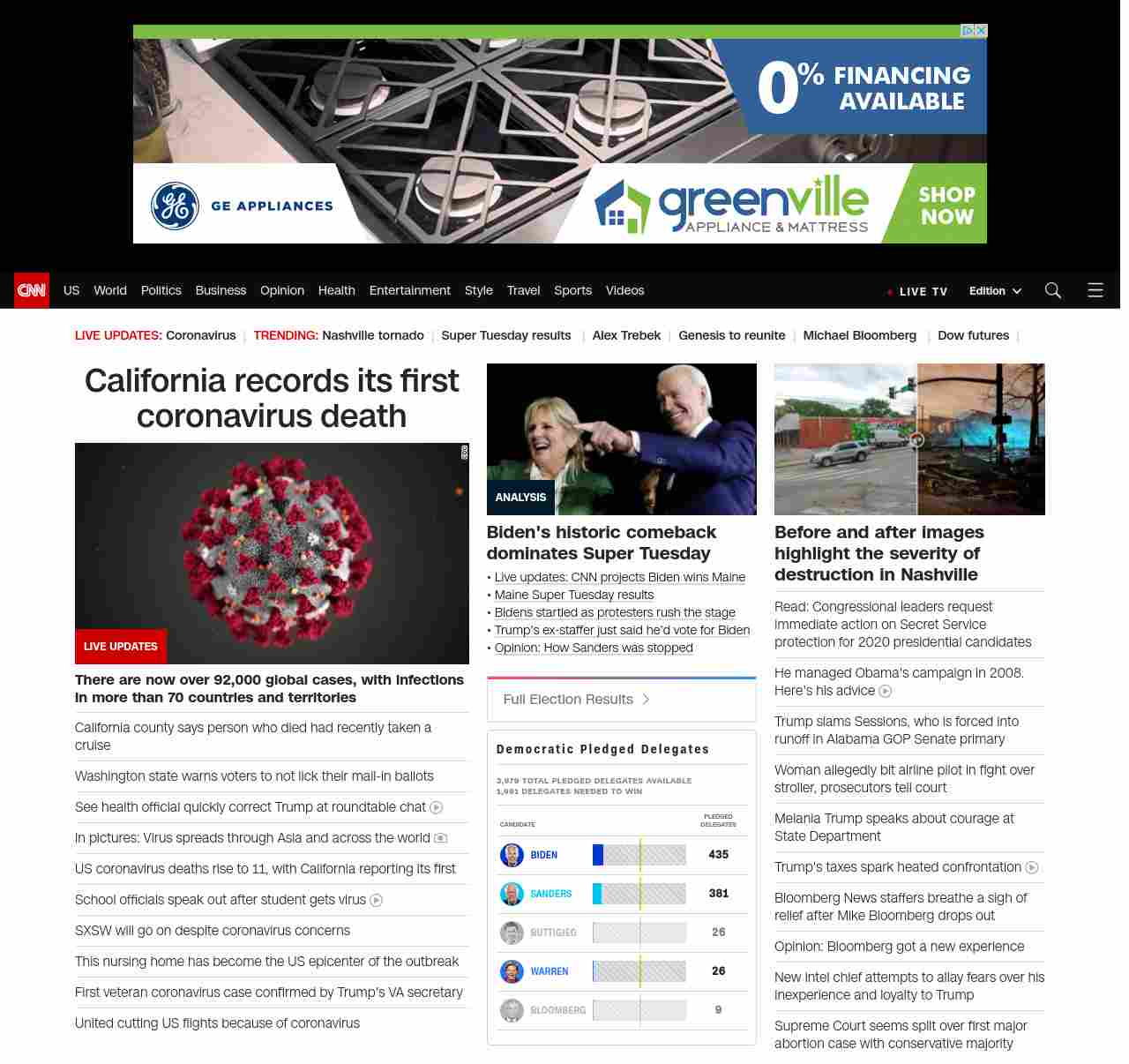 || screaming-banner-text banner-text-size–char-47″ data-analytics=”_list-hierarchical-xs_hyperlink_”> California records its first coronavirus death ||” , title: “CNN – Breaking News, Latest News and Videos” , siblings: {“articleList”:[{“uri”:”/2020/03/04/health/us-coronavirus-update-wednesday/index.html”,”headline”:”California county says person who died had recently taken a cruise”,”thumbnail”:”//cdn.cnn.com/cnnnext/dam/assets/200229210420-coronavirus-cell-small-11.jpg”,”duration”:””,”description”:”As officials around the country urged local communities to think about ways to stop the u003ca href=”https://www.cnn.com/specials/asia/coronavirus-outbreak-intl-hnk” target=”_blank”>novel coronavirusu003c/a> from spreading, California authorities said Wednesday that a person who died from Covid-19 had recently been on a cruise. “,”layout”:””