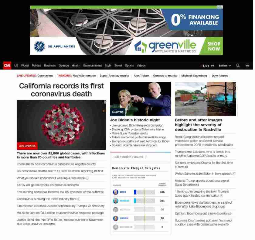 || screaming-banner-text banner-text-size–char-47″ data-analytics=”_list-hierarchical-xs_hyperlink_”> California records its first coronavirus death ||” , title: “CNN – Breaking News, Latest News and Videos” , siblings: {“articleList”:[{“uri”:”/2020/03/04/health/us-coronavirus-update-wednesday/index.html”,”headline”:”US coronavirus deaths rise to 11, with California reporting its first”,”thumbnail”:”//cdn.cnn.com/cnnnext/dam/assets/200304041310-05-coronavirus-0303-seattle-small-11.jpg”,”duration”:””,”description”:”The US death toll from the coronavirusu003ca href=”https://www.cnn.com/2020/03/04/asia/novel-coronavirus-covid-19-intl-hnk/index.html” target=”_blank”> climbed to 11 Wednesdayu003c/a> as officials around the country urged local communities to think about ways to stop the virus from spreading.”,”layout”:””