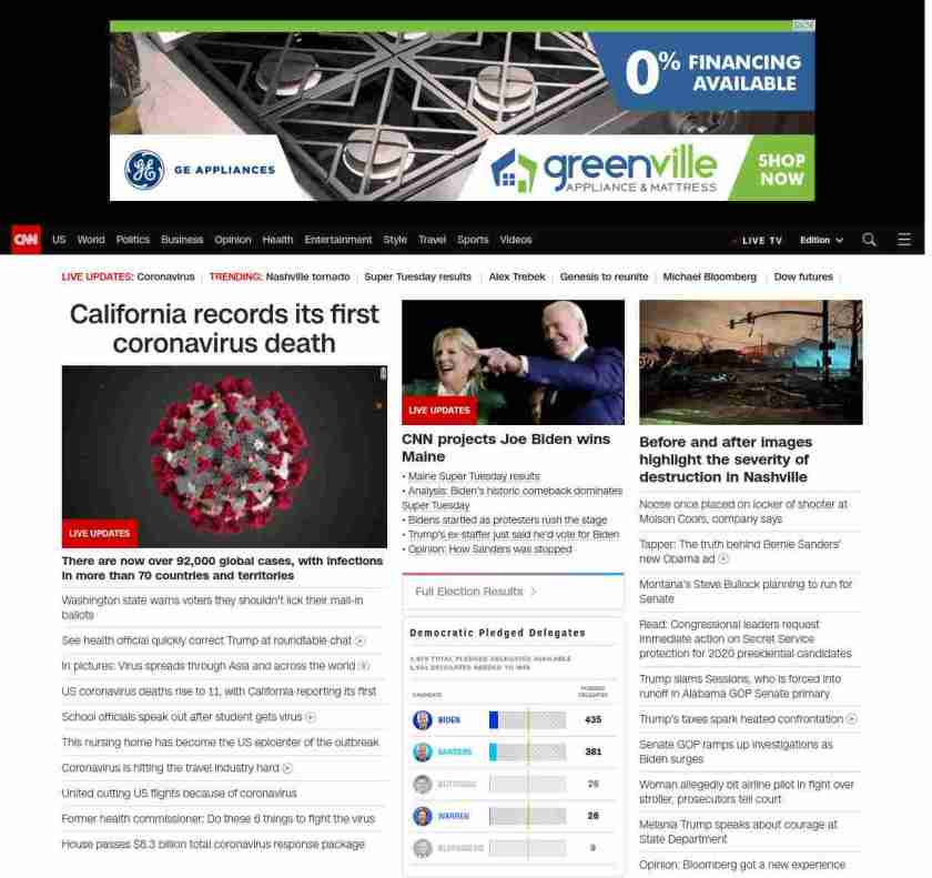 || screaming-banner-text banner-text-size–char-47″ data-analytics=”_list-hierarchical-xs_hyperlink_”> New York confirms 5 new cases of coronavirus ||” , title: “CNN – Breaking News, Latest News and Videos” , siblings: {“articleList”:[{“uri”:”/2020/03/04/health/us-coronavirus-update-wednesday/index.html”,”headline”:”California records its first coronavirus death”,”thumbnail”:”//cdn.cnn.com/cnnnext/dam/assets/200304041310-05-coronavirus-0303-seattle-small-11.jpg”,”duration”:””,”description”:”The US death toll from the coronavirusu003ca href=”https://www.cnn.com/2020/03/04/asia/novel-coronavirus-covid-19-intl-hnk/index.html” target=”_blank”> climbed to 11 Wednesdayu003c/a> as officials around the country urged local communities to think about ways to stop the virus from spreading.”,”layout”:””