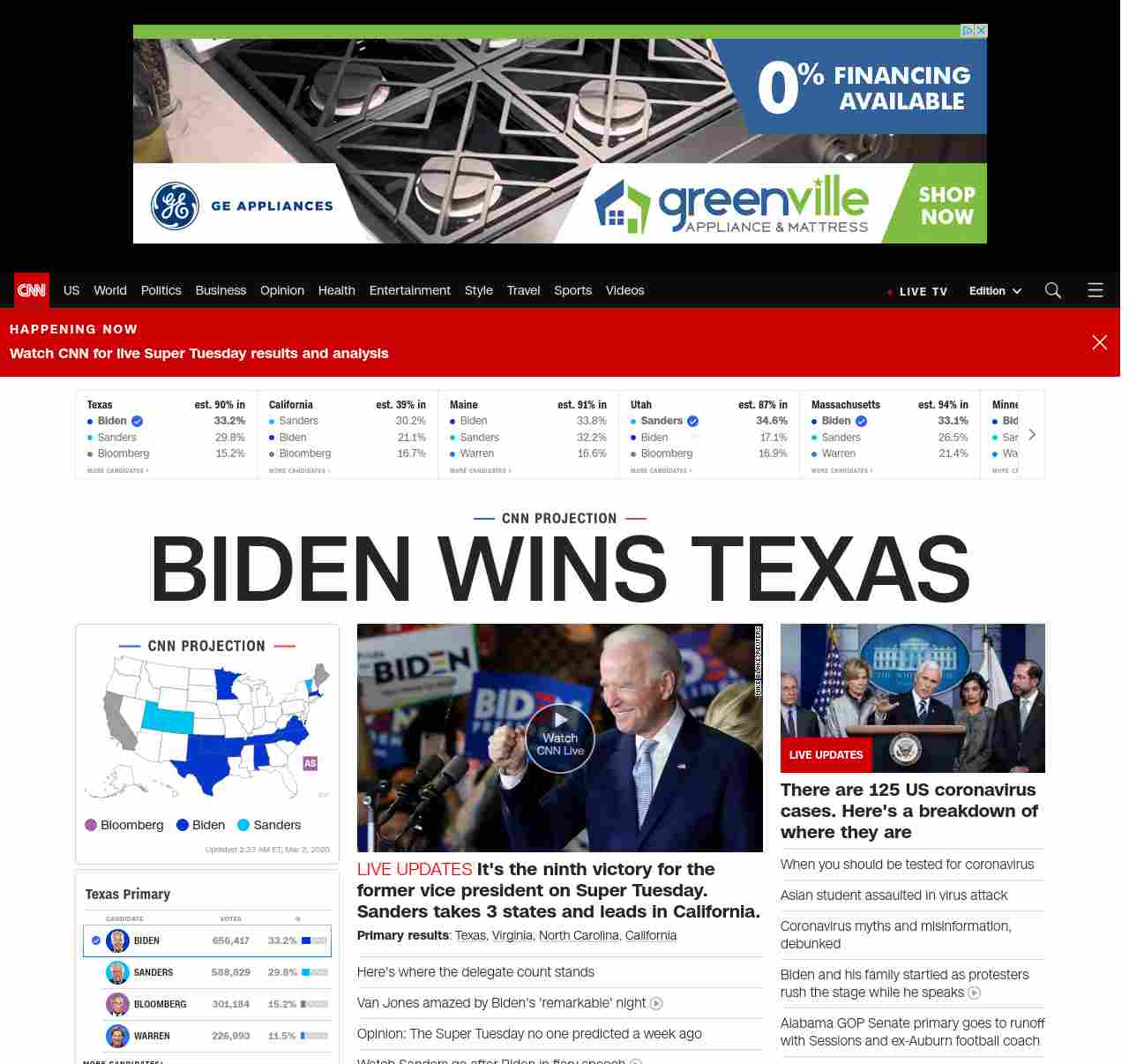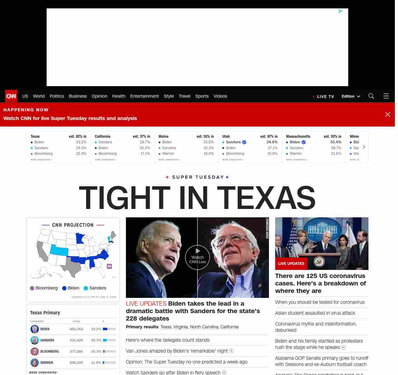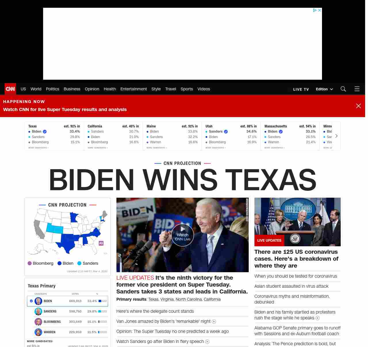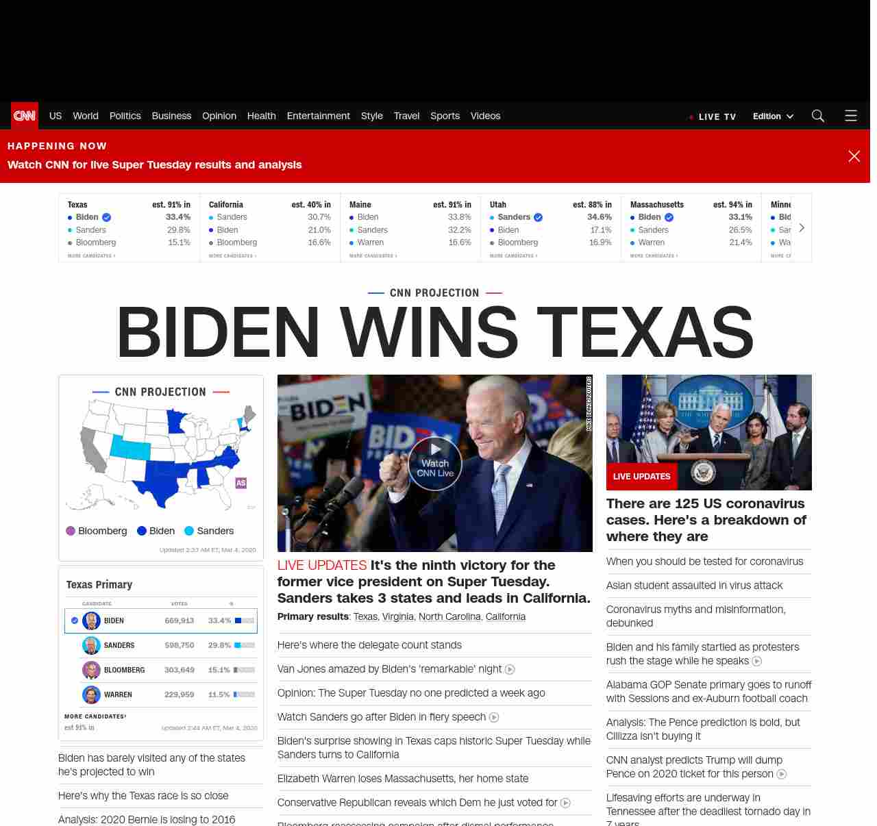 || banner-text–maximized banner-text-size–char-17-uc”> BIDEN WINS TEXAS ||” , title: “CNN – Breaking News, Latest News and Videos” , siblings: {“articleList”:[{“uri”:”/2020/03/04/politics/candidate-bernie-sanders-2016-vs-2020/index.html”,”headline”:”Analysis: 2020 Bernie is losing to 2016 Bernie”,”thumbnail”:”//cdn.cnn.com/cnnnext/dam/assets/200303221723-05-sanders-super-tuesday-0303-small-11.jpg”,”duration”:””,”description”:”u003ca href=”https://www.cnn.com/election/2020/candidate/sanders” target=”_blank”>Bernie Sandersu003c/a> is closer now than he ever was to the u003ca href=”https://www.cnn.com/election” target=”_blank”>Democratic presidential nominationu003c/a> in 2016.”,”layout”:””