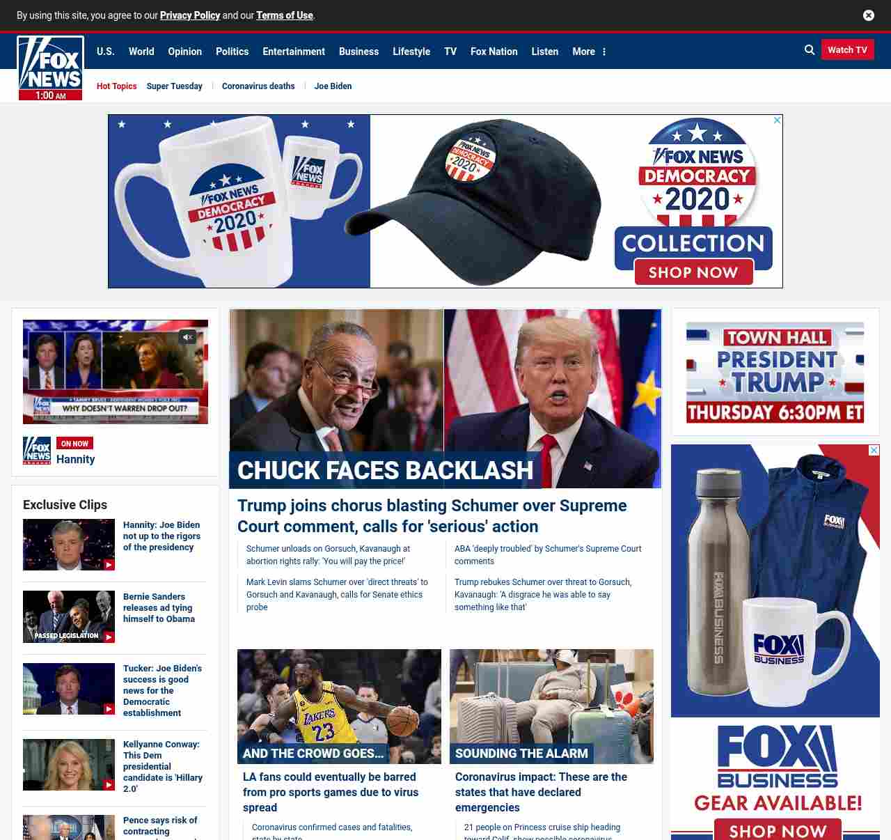 FN: [[CHUCK FACES BACKLASH]] Trump joins chorus blasting Schumer over Supreme Court comment, calls for ' serious' action ((lubuntu at wor2))