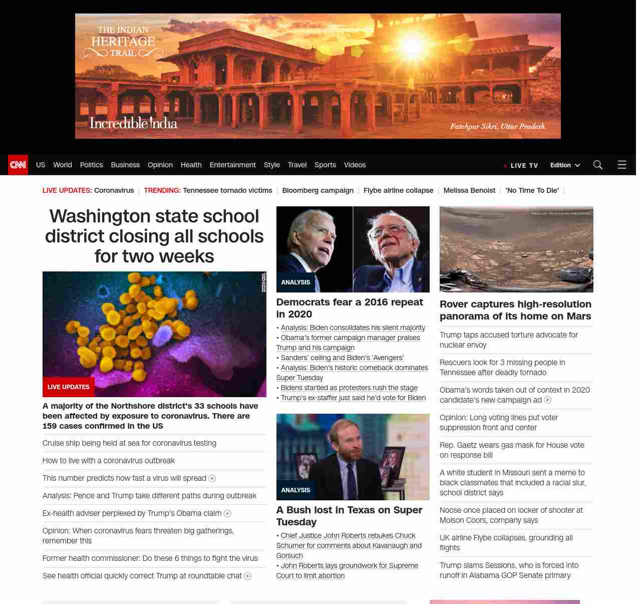 || screaming-banner-text banner-text-size–char-47″ data-analytics=”_list-hierarchical-xs_hyperlink_”> Washington state school district closing all schools for two weeks ||” , title: “CNN – Breaking News, Latest News and Videos” , siblings: {“articleList”:[{“uri”:”/2020/03/05/health/california-coronavirus-cruise-ship-thursday/index.html”,”headline”:”Cruise ship is held off at sea after California man dies from coronavirus 2 weeks after his trip”,”thumbnail”:”//cdn.cnn.com/cnnnext/dam/assets/200304200128-grand-princess-cruise-ship-file-small-11.jpg”,”duration”:””,”description”:”A cruise ship passengeru003ca href=”https://www.cnn.com/2020/03/01/health/coronavirus-symptoms-treatment/index.html” target=”_blank”> died from the novel coronavirusu003c/a> nearly two weeks after he returned home, marking California’s first death as the disease sickens people in 15 states. “,”layout”:””