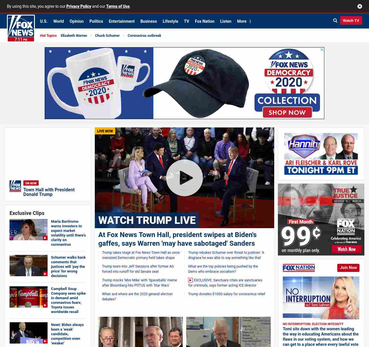 FN: [[WATCH TRUMP LIVE]] At Fox News Town Hall, president swipes at Biden' s gaffes, says Warren ' may have sabotaged' Sanders ((lubuntu at wor2))
