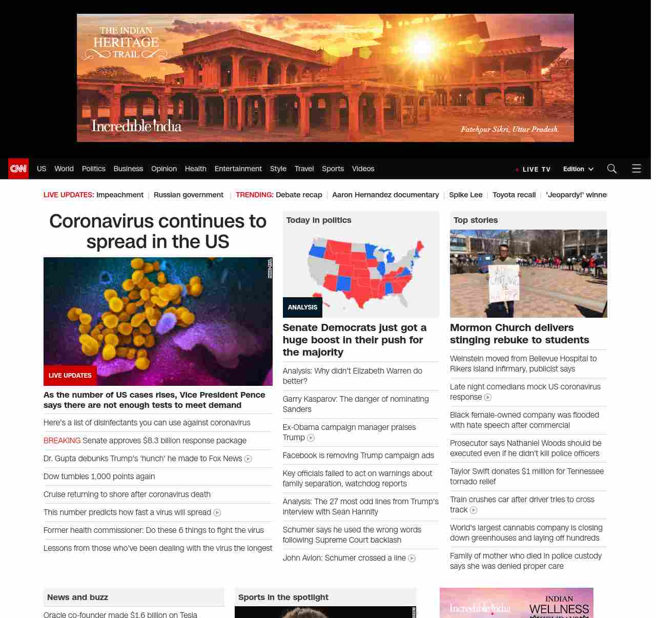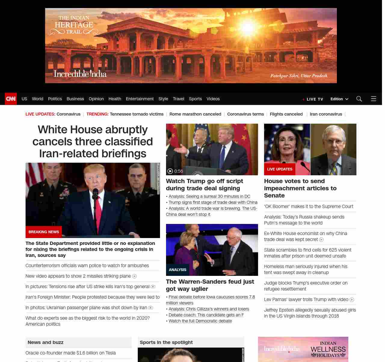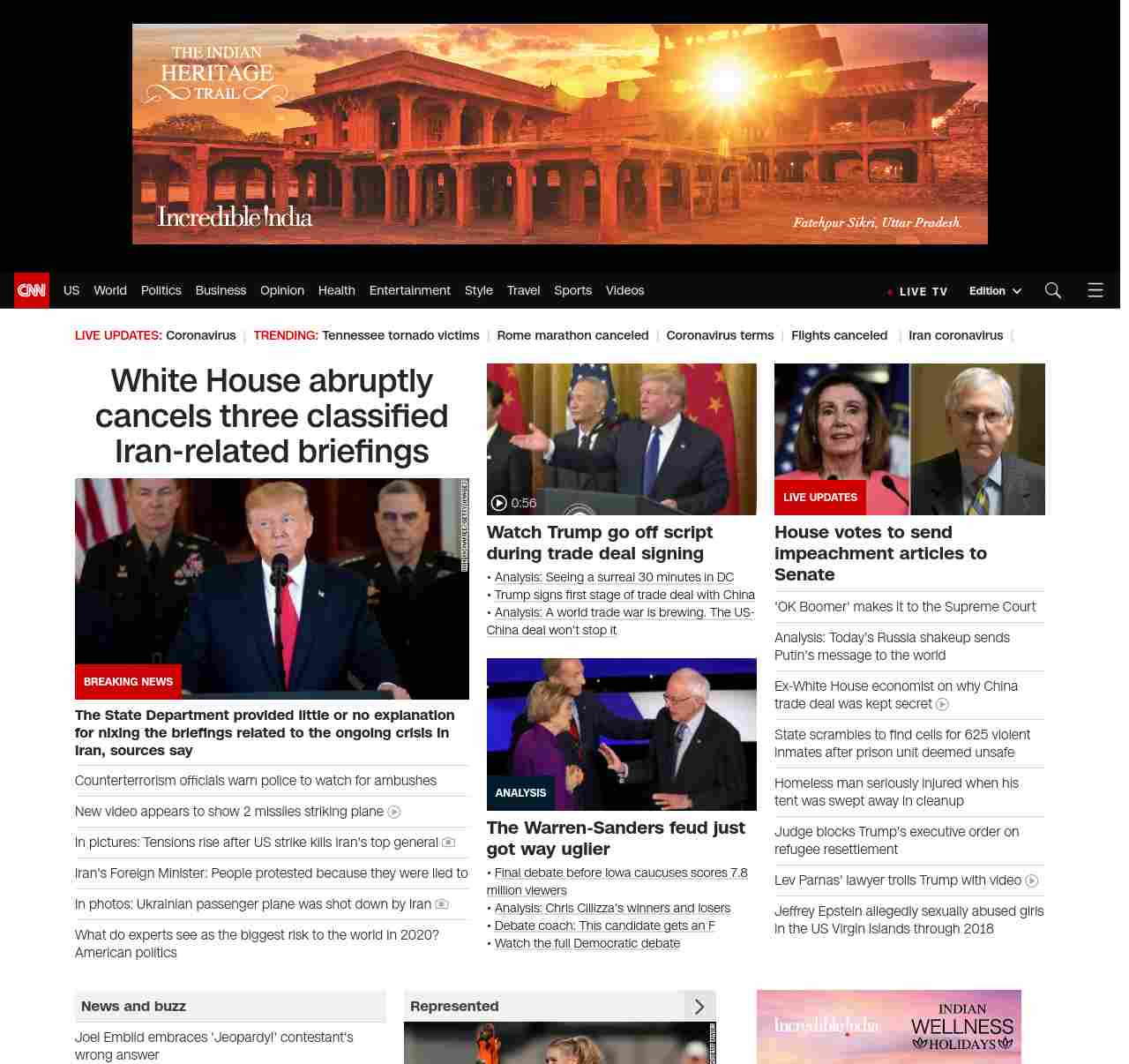 || screaming-banner-text banner-text-size–char-44″ data-analytics=”_list-hierarchical-xs_hyperlink_”> Coronavirus continues to spread in the US ||” , title: “CNN – Breaking News, Latest News and Videos” , siblings: {“articleList”:[{“uri”:”/2020/01/15/politics/state-department-cancels-iran-briefing/index.html”,”headline”:”u003cstrong>The State Department provided little or no explanation for nixing the briefings related to the ongoing crisis in Iran, sources sayu003c/strong>”,”thumbnail”:”//cdn.cnn.com/cnnnext/dam/assets/200108123841-07-trump-iran-statement-0108-small-11.jpg”,”duration”:””,”description”:”The State Department abruptly canceled two classified congressional briefings related to the ongoing Iran crisis that were scheduled for Wednesday and provided little or no explanation for doing so, Senate and House aides confirm to CNN. “,”layout”:””