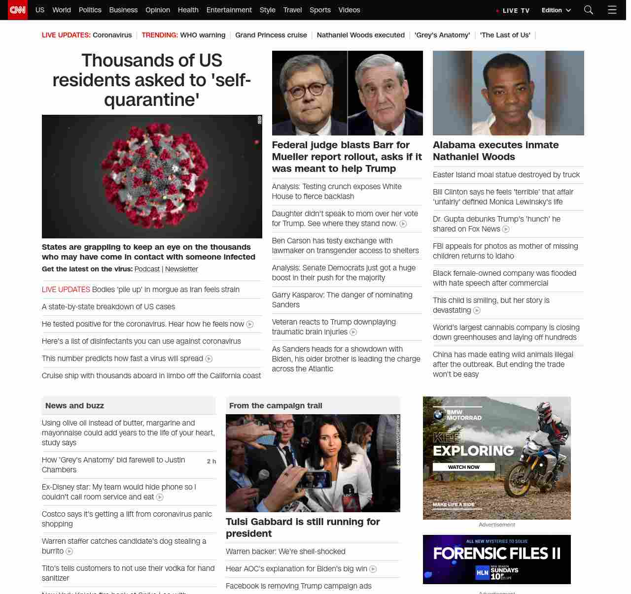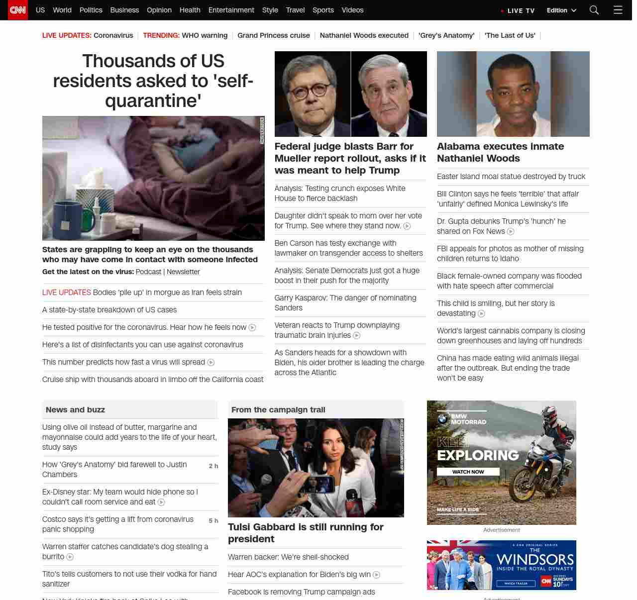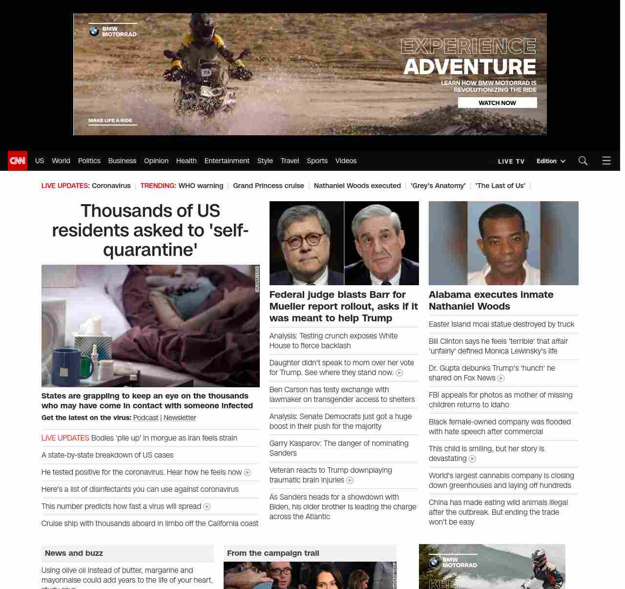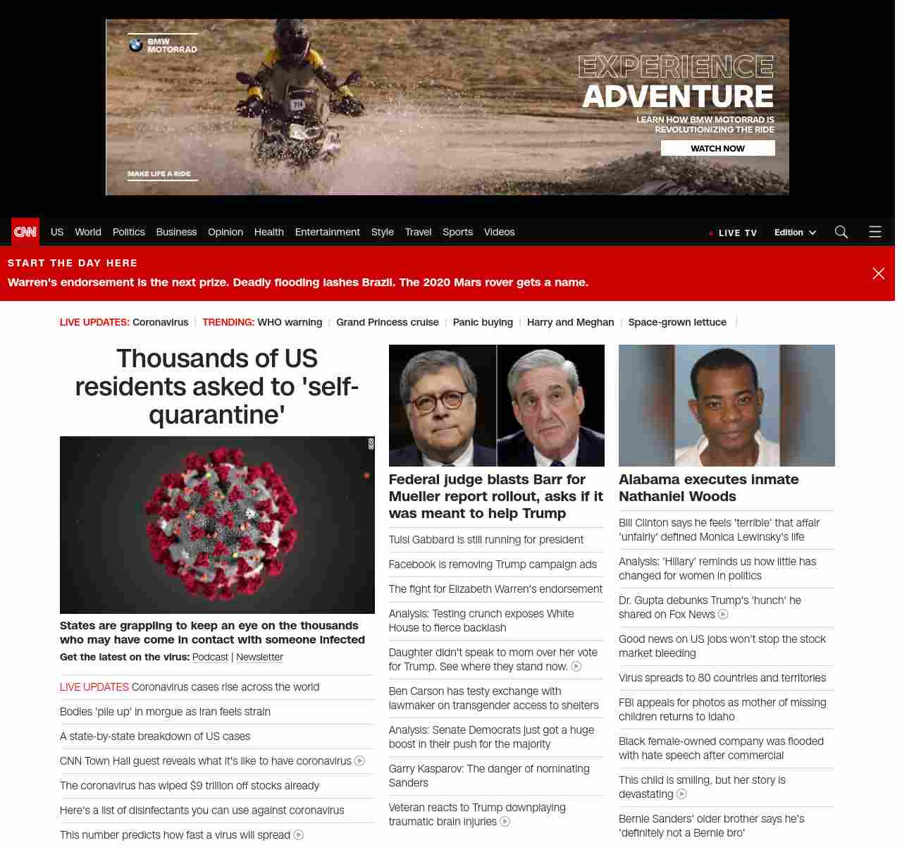|| screaming-banner-text banner-text-size–char-47″ data-analytics=”_list-hierarchical-xs_article_”> Thousands of US residents asked to ‘self-quarantine’ ||” , title: “CNN – Breaking News, Latest News and Videos” , siblings: {“articleList”:[{“uri”:”/2020/03/06/health/self-quarantine-explainer-procedures/index.html”,”headline”:”u003cstrong>States are grappling to keep an eye on the thousands who may have come in contact with someone infected u003c/strong>”,”thumbnail”:”//cdn.cnn.com/cnnnext/dam/assets/200306040557-woman-home-sick-stock-small-11.jpg”,”duration”:””,”description”:”u003cstrong>Get the latest on the virus:u003c/strong> u003ca href=”https://www.cnn.com/audio/podcasts/corona-virus” target=”_blank”>Podcastu003c/a> | u003ca href=”https://www.cnn.com/specials/coronavirus-newsletter” target=”_blank”>Newsletteru003c/a>”,”layout”:””