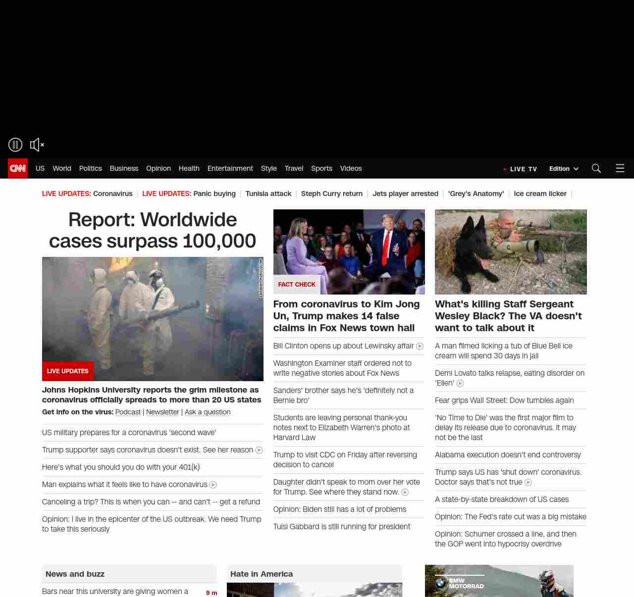 || screaming-banner-text banner-text-size–char-41″ data-analytics=”_list-hierarchical-xs_hyperlink_”> Report: Worldwide cases surpass 100,000 ||” , title: “CNN – Breaking News, Latest News and Videos” , siblings: {“articleList”:[{“uri”:”/videos/politics/2020/03/06/reality-check-trump-coronavirus-confusion-avlon-newday-vpx.cnn”,”headline”:”Trump supporter says coronavirus doesn’t exist. See her reason”,”thumbnail”:”//cdn.cnn.com/cnnnext/dam/assets/200302163544-01-trump-coronavirus-0302-small-11.jpg”,”duration”:”03:14″,”description”:”CNN’s John Avlon explains how President Trump is sowing confusion about the novel coronavirus.”,”layout”:””,”iconType”:”video”