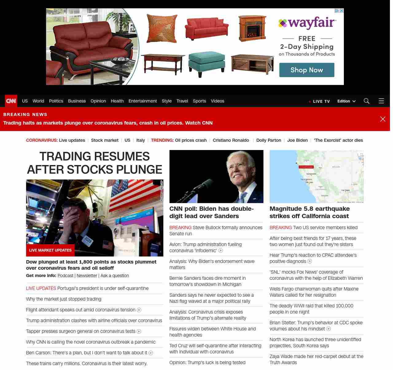 CNN3: “:”u003cstrong>Dow briefly dropped more than 2, 000 points over coronavirus fears and oil selloffu003c/strong>”, “BANNER=|pagerendered| ((lubuntu at wor2))