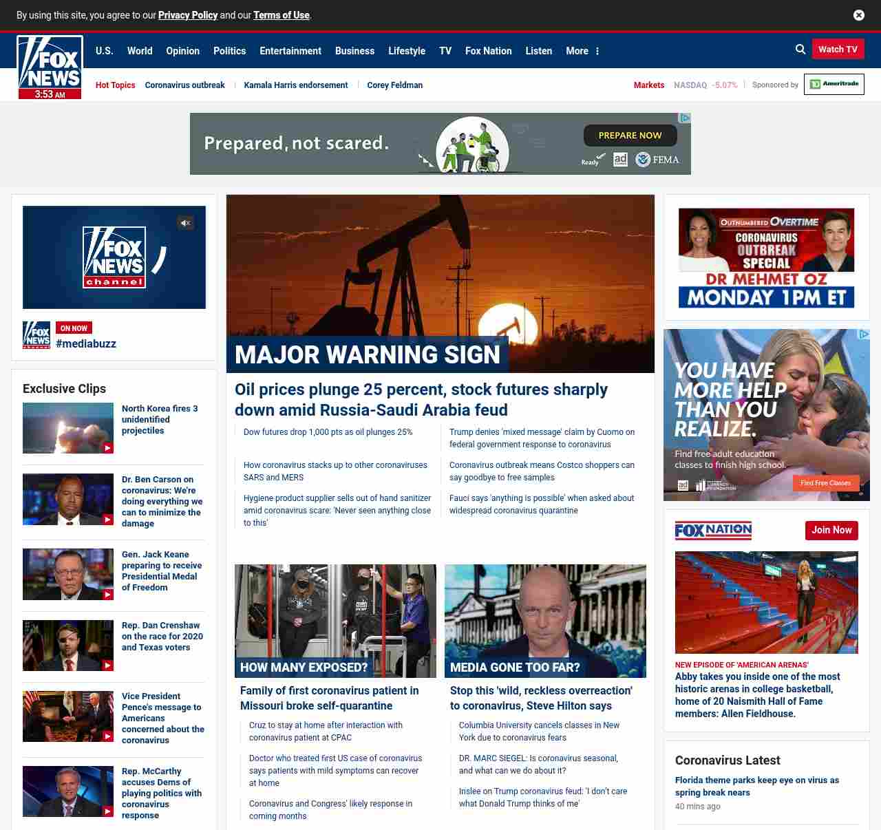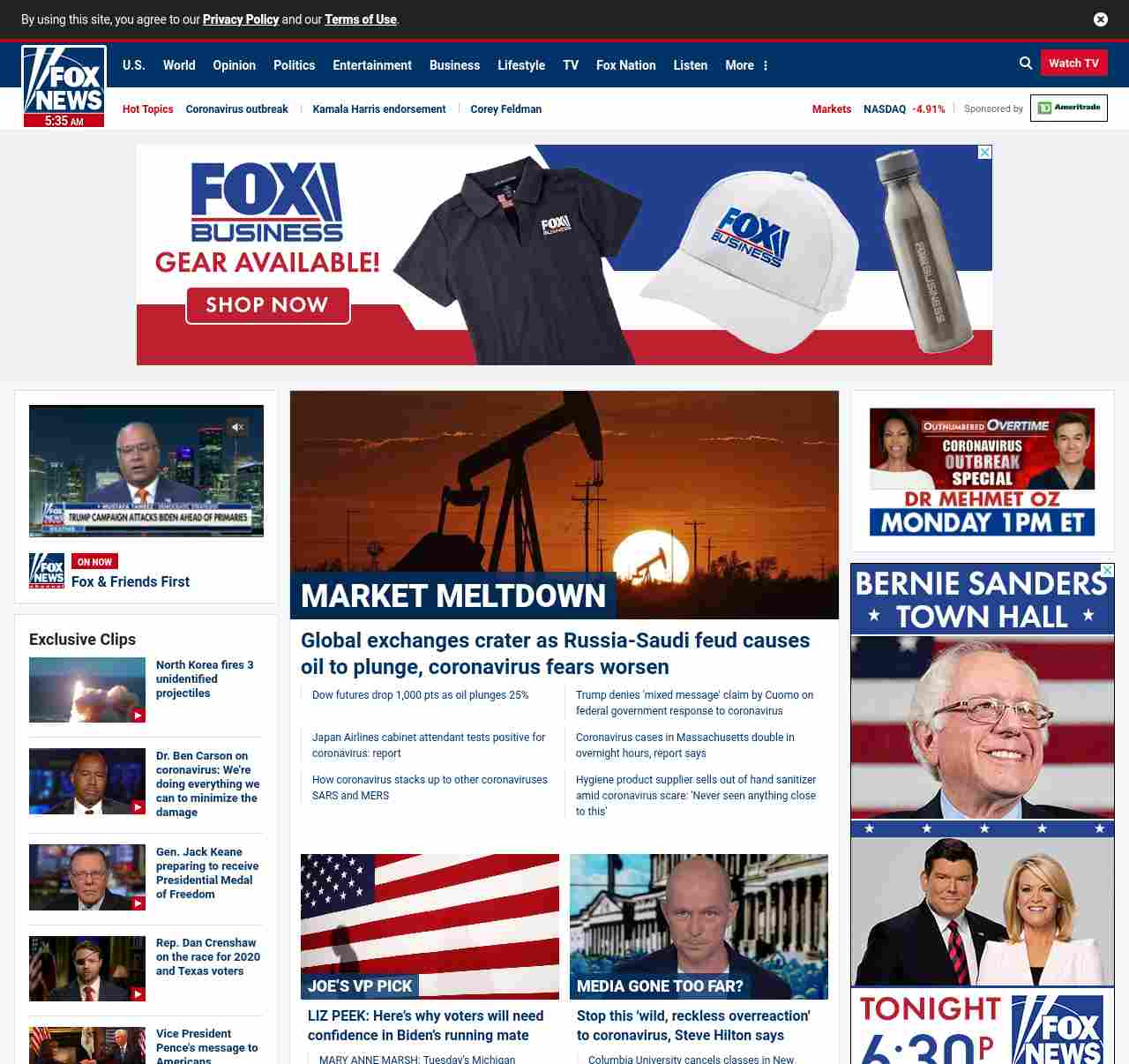 =”https://www.foxnews.com/us/coronavirus-oil-plunges-20-percent-trading“>Global exchanges crater as Russia-Saudi feud causes oil to plunge, coronavirus fears worsen