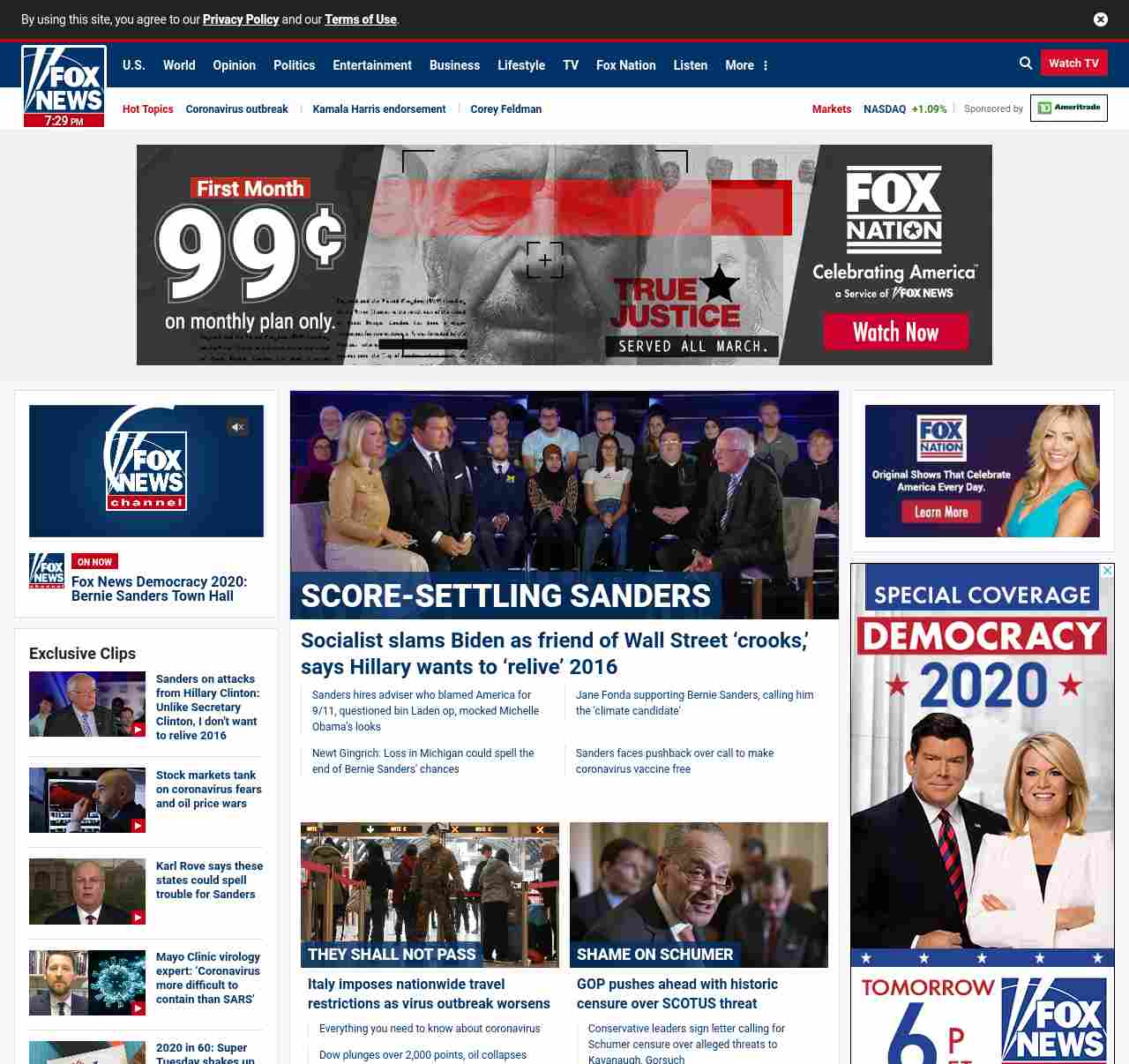 FN: [[SCORE-SETTLING SANDERS]] Socialist slams Biden, Hillary at Fox News Town Hall ahead of Michigan primary ((lubuntu at wor2))