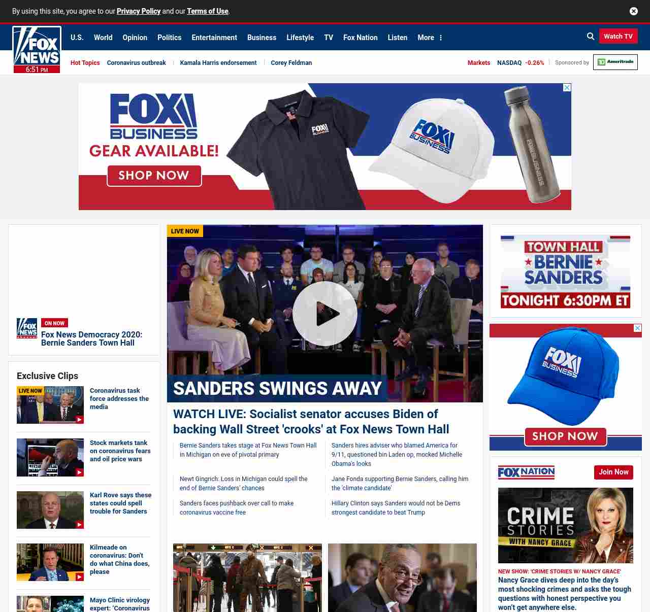 FN: [[BACK TO THE WALL?]] WATCH LIVE: Bernie Sanders takes stage at Fox News Town Hall in Michigan ahead of crucial primary ((lubuntu at wor2))