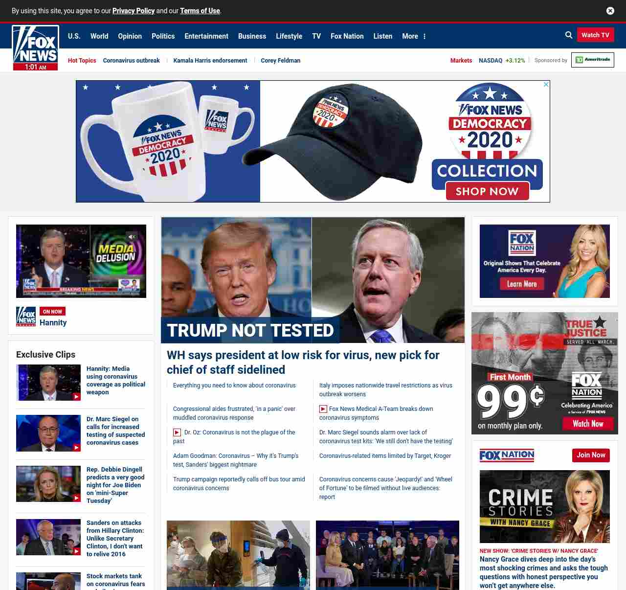 FN: [[TRUMP NOT TESTED]] WH says president at low risk for virus, new pick for chief of staff sidelined ((lubuntu at wor2))