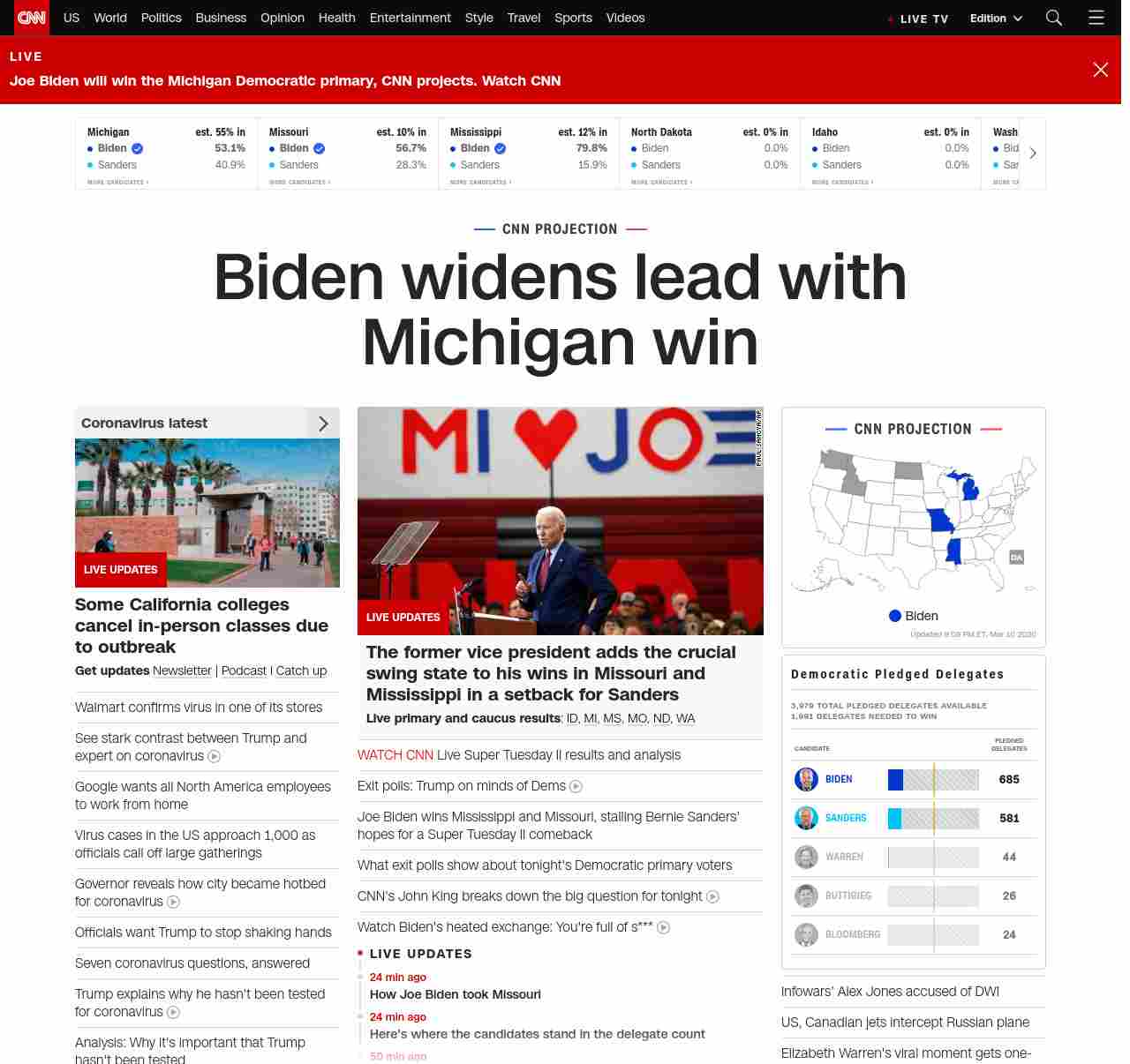 FN: [[BERN-OUT?]] Sanders skids as Biden claims big wins in Michigan and Missouri, building momentum toward party nod ((lubuntu at wor2))
