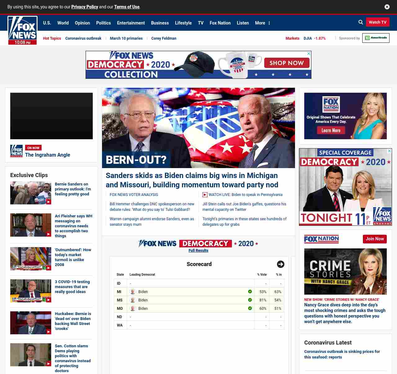 =”https://www.foxnews.com/politics/polls-close-missouri-mississippi-michigan-north-dakota“>Sanders skids as Biden claims big wins in Michigan and Missouri, building momentum toward party nod