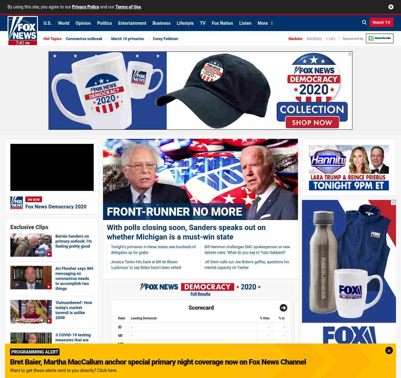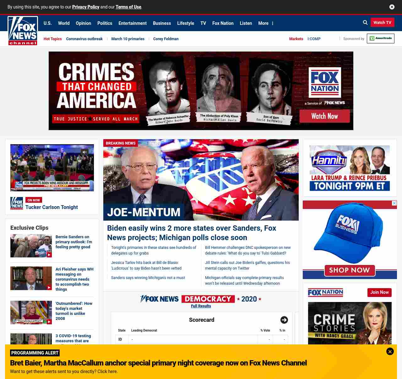 FN: [[JOE-MENTUM]] Biden easily wins 2 more states over Sanders, Fox News projects; Michigan polls close soon ((lubuntu at wor2))