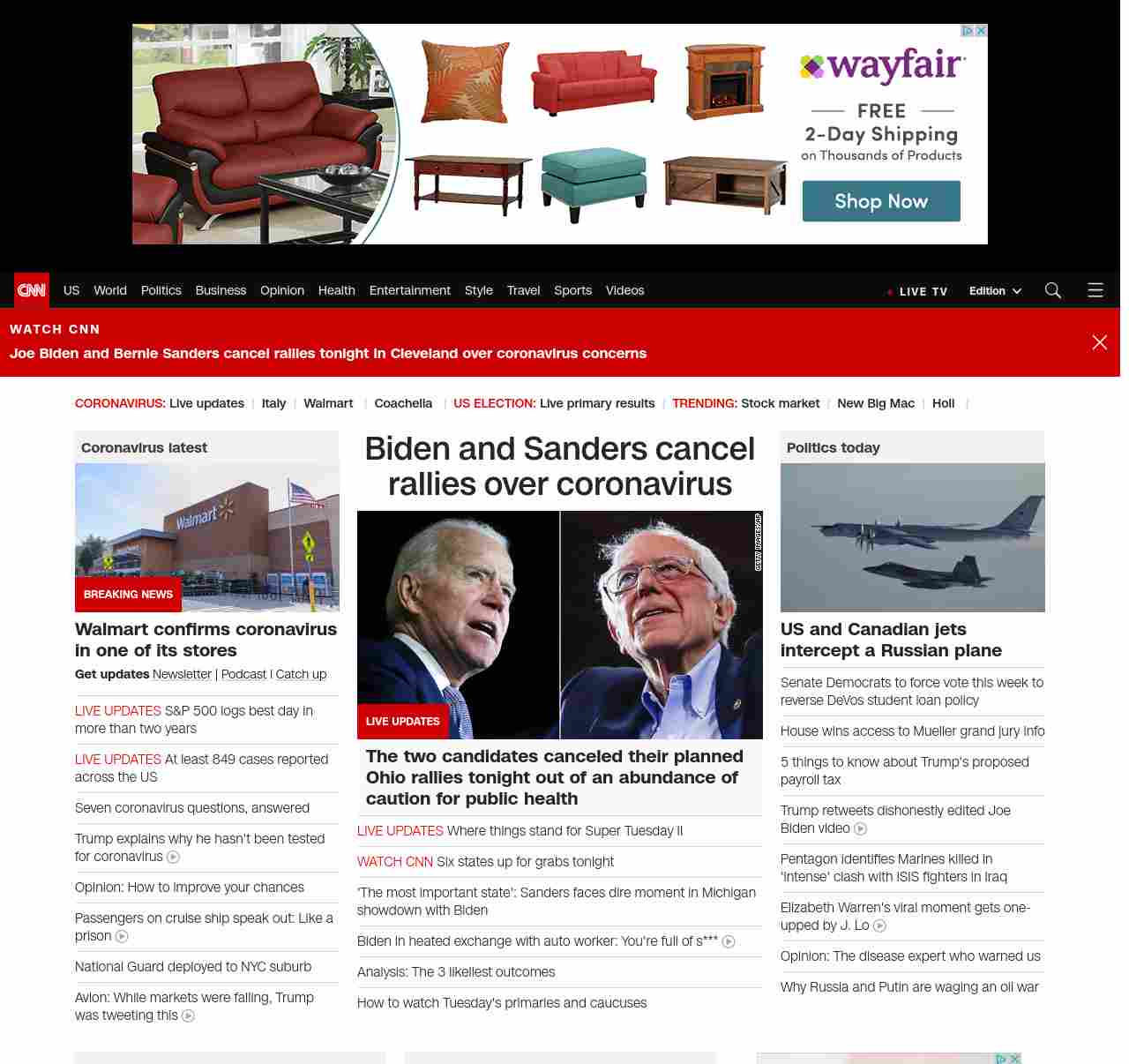 CNN1: FOXVCNN=|banner-text–natural”> Biden and Sanders cancel rallies over coronavirus| ((lubuntu at wor2))