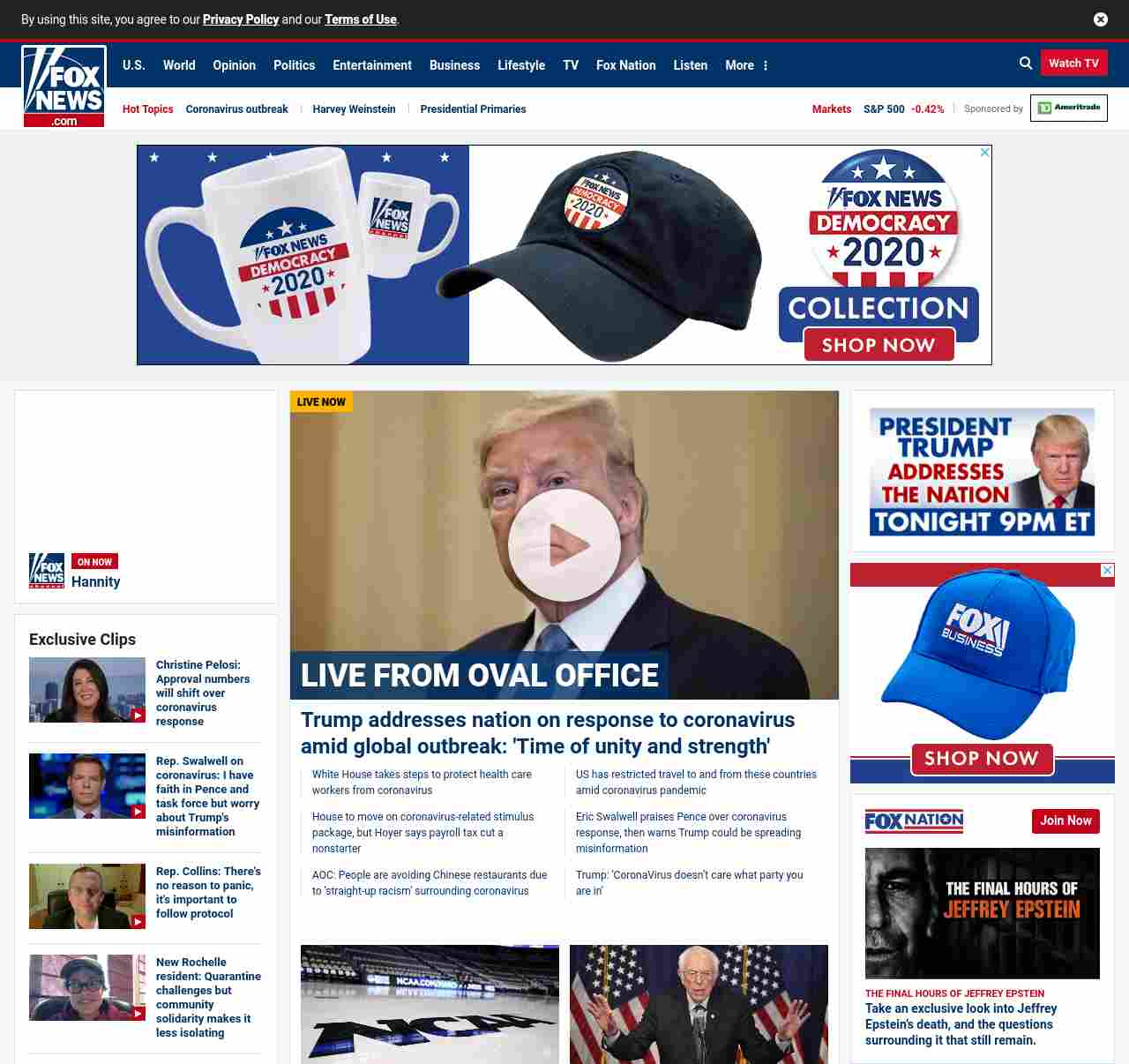 FN: [[LIVE FROM OVAL OFFICE]] Trump addresses nation on response to coronavirus amid global outbreak: ' Time of unity and strength' ((lubuntu at wor2))