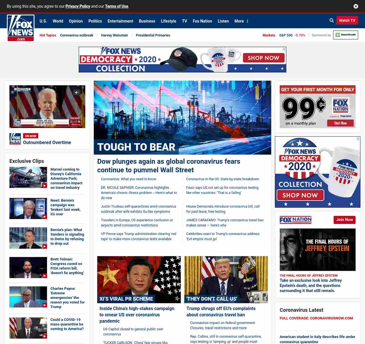 FN: [[TOUGH TO BEAR]] Dow drops nearly 10 percent as global coronavirus fears continue to pummel Wall Street ((lubuntu at wor2))