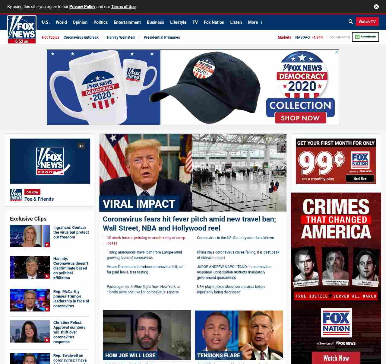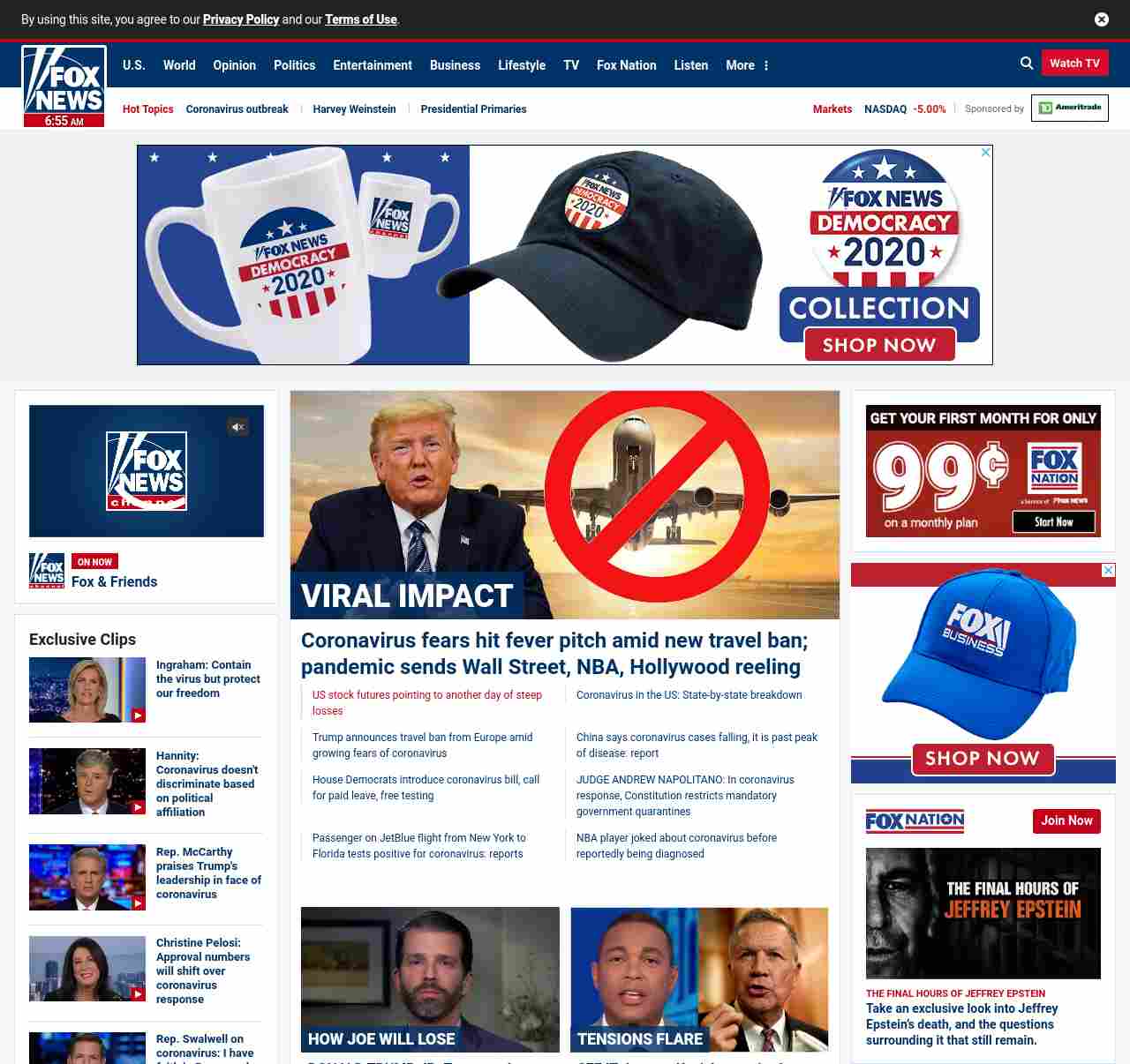 FN: [[VIRAL IMPACT]] Coronavirus fears hit fever pitch amid new travel ban; pandemic sends Wall Street, NBA, Hollywood reeling ((lubuntu at wor2))