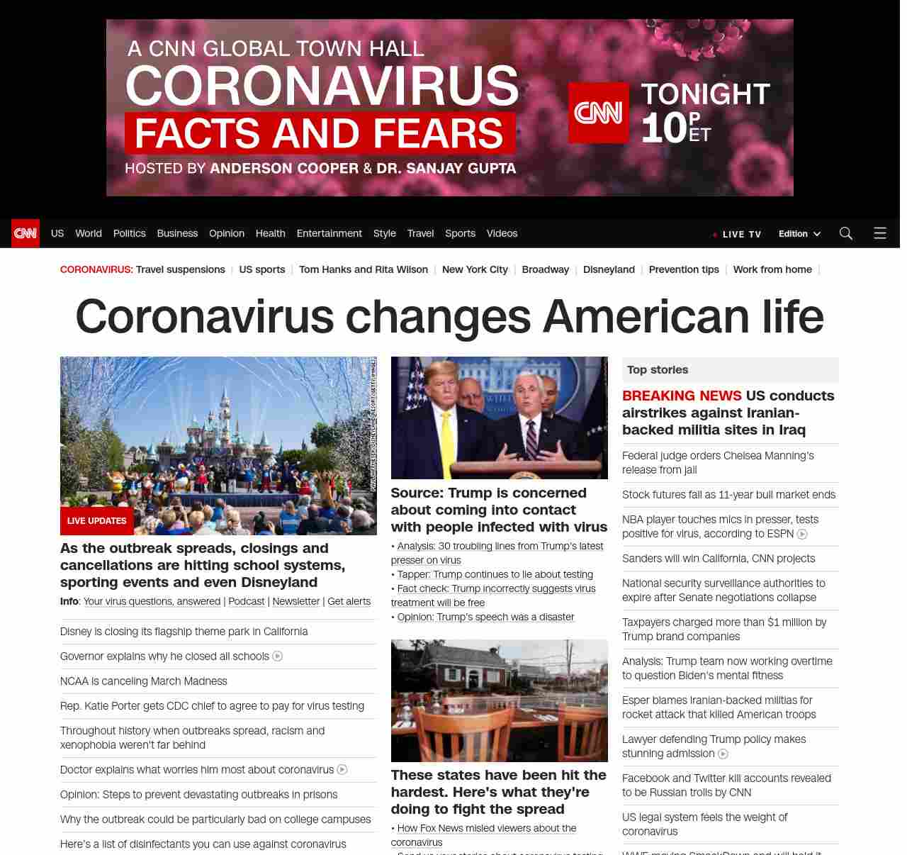 || banner-text–maximized banner-text-size–char-35″> Coronavirus changes American life ||” , title: “CNN – Breaking News, Latest News and Videos” , siblings: {“articleList”:[{“uri”:”/2020/03/12/media/disney-world-close-coronavirus/index.html”,”headline”:”Disneyland and Disney World close due to outbreak”,”thumbnail”:”//cdn.cnn.com/cnnnext/dam/assets/180620114344-02-disney-file-small-11.jpg”,”duration”:””,”description”:”Disney is closing Walt Disney World, its flagship theme park resort in Orlando, Florida, because of the coronavirus outbreak.”,”layout”:””