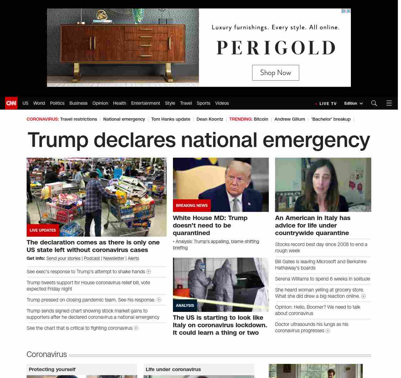 || banner-text–maximized banner-text-size–char-35″> Trump declares national emergency ||” , title: “CNN – Breaking News, Latest News and Videos” , siblings: {“articleList”:[{“uri”:”/videos/politics/2020/03/14/trump-handshakes-coronavirus-press-briefing-vpx.cnn”,”headline”:”See exec’s response to Trump’s attempt to shake hands”,”thumbnail”:”//cdn.cnn.com/cnnnext/dam/assets/200313205909-trump-elbow-bump-press-conference-03132020-small-11.jpg”,”duration”:”00:44″,”description”:”President Trump shakes hands with executives at his coronavirus press briefing, a gesture health experts have advised against amid the coronavirus pandemic. “,”layout”:””,”iconType”:”video”