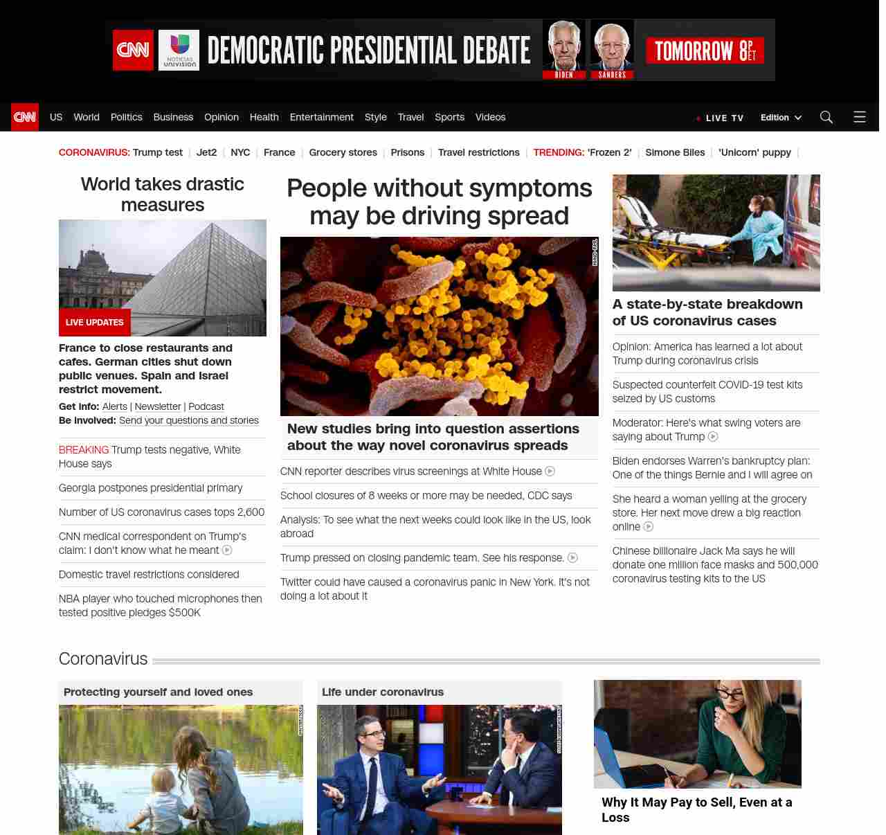 || banner-text–natural” data-analytics=”_list-hierarchical-xs_article_”> People without symptoms may be driving spread ||” , title: “CNN – Breaking News, Latest News and Videos” , siblings: {“articleList”:[{“uri”:”/2020/03/14/health/coronavirus-asymptomatic-spread/index.html”,”headline”:”u003cstrong>New studies bring into question assertions about the way novel coronavirus spreadsu003c/strong>”,”thumbnail”:”//cdn.cnn.com/cnnnext/dam/assets/200213175729-01-coronavirus-0213-small-11.jpg”,”duration”:””,”description”:”u003cstrong>Get info: u003c/strong>u003ca href=”https://www.cnn.com/specials/mobile-apps” target=”_blank”>Alertsu003c/a> | u003ca href=”https://www.cnn.com/specials/coronavirus-newsletter?utm_source=hp&source=hp” target=”_blank”>Newsletteru003c/a> | u003ca href=”https://www.cnn.com/audio/podcasts/corona-virus” target=”_blank”>Podcastu003c/a> u003cbr />u003cstrong>Be involved: u003c/strong>u003ca href=”https://www.cnn.com/2020/03/04/us/coronavirus-town-hall-questions/index.html” target=”_blank”>Send your questions and storiesu003c/a>”,”layout”:””