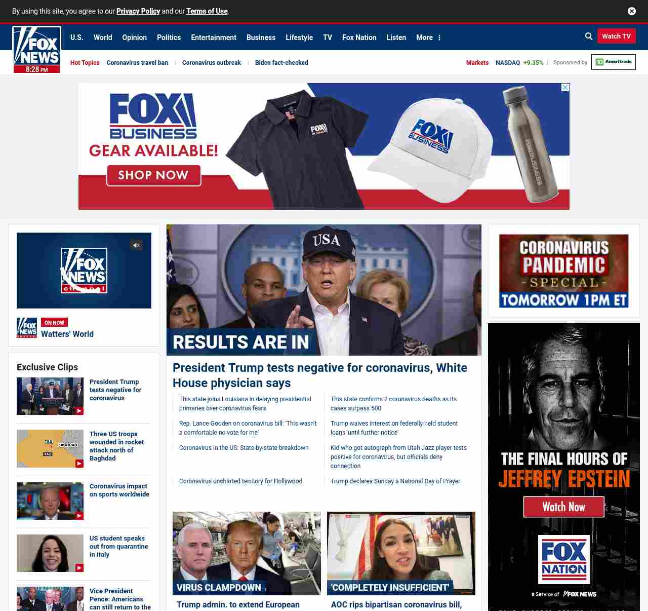 FN: [[RESULTS ARE IN]] President Trump tests negative for coronavirus, White House physician says ((lubuntu at wor2))