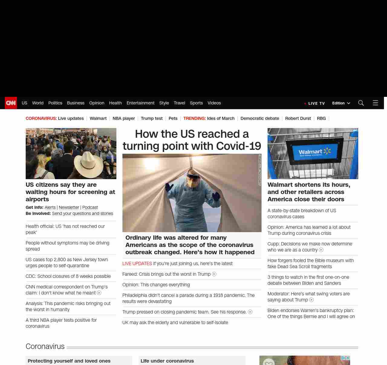 || banner-text–natural” data-analytics=”_list-hierarchical-xs_article_”> How the US reached a turning point with Covid-19 ||” , title: “CNN – Breaking News, Latest News and Videos” , siblings: {“articleList”:[{“uri”:”/travel/article/coronavirus-airport-screening-sunday/index.html”,”headline”:”US citizens say they are waiting hours for screening at airports”,”thumbnail”:”//cdn.cnn.com/cnnnext/dam/assets/200315082240-01-dfw-coronavirus-0314-small-11.jpg”,”duration”:””,”description”:”u003cstrong>Get info: u003c/strong>u003ca href=”https://www.cnn.com/specials/mobile-apps” target=”_blank”>Alertsu003c/a> | u003ca href=”https://www.cnn.com/specials/coronavirus-newsletter?utm_source=hp&source=hp” target=”_blank”>Newsletteru003c/a> | u003ca href=”https://www.cnn.com/audio/podcasts/corona-virus” target=”_blank”>Podcastu003c/a> u003cbr />u003cstrong>Be involved: u003c/strong>u003ca href=”https://www.cnn.com/2020/03/04/us/coronavirus-town-hall-questions/index.html” target=”_blank”>Send your questions and storiesu003c/a>”,”layout”:””