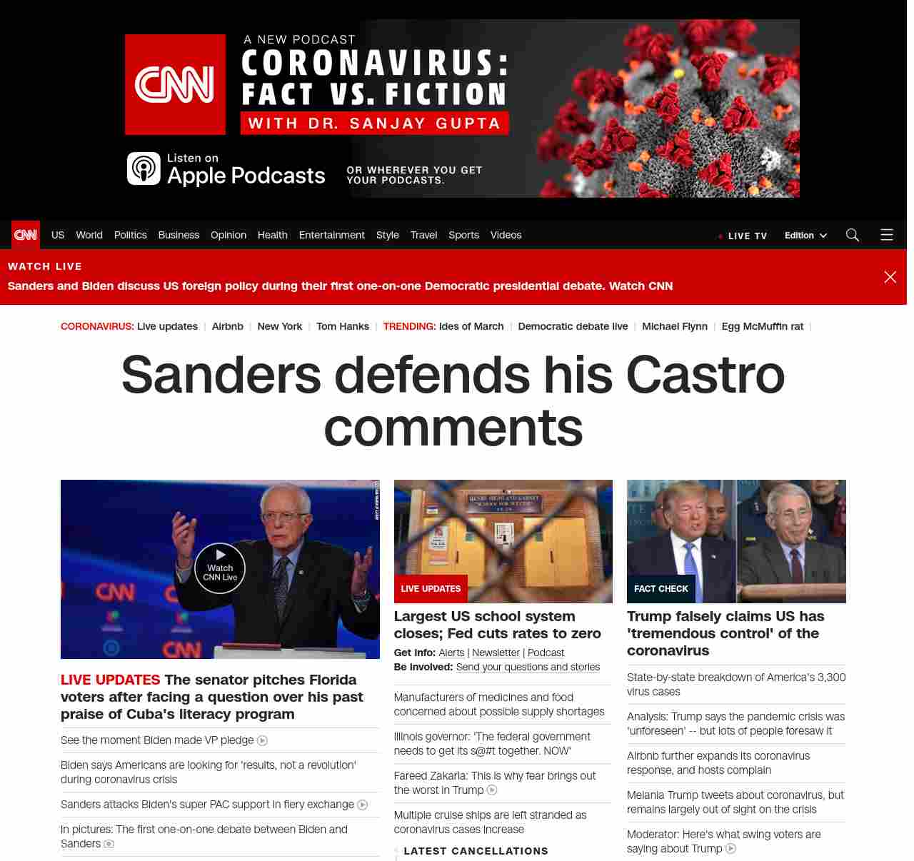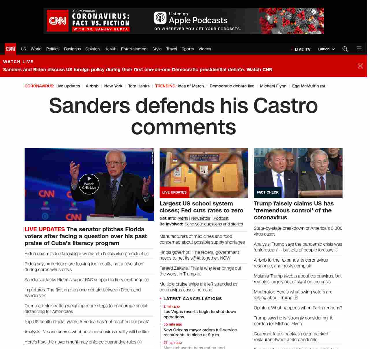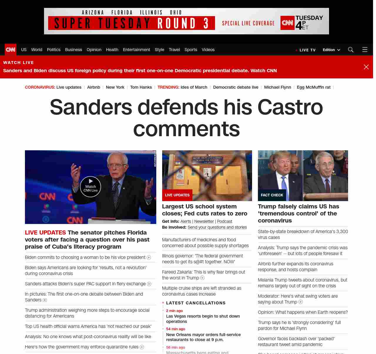 || banner-text–natural”> Sanders defends his Castro comments ||” , title: “CNN – Breaking News, Latest News and Videos” , siblings: {“articleList”:[{“uri”:”/politics/live-news/2020-democratic-debate-live-updates/index.html”,”headline”:”u003cstrong>The senator pitches Florida voters after facing a question over his past praise of Cuba’s literacy programu003c/strong> “,”thumbnail”:”//cdn.cnn.com/cnnnext/dam/assets/200315203848-24-cnn-debate-0315-small-11.jpg”,”duration”:””,”description”:””,”layout”:””