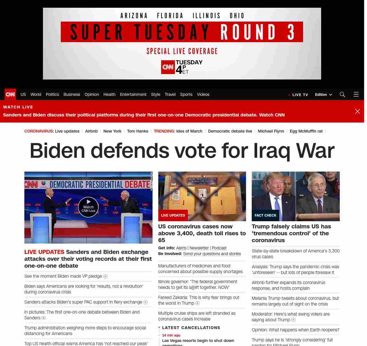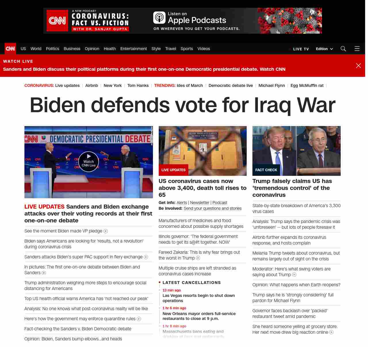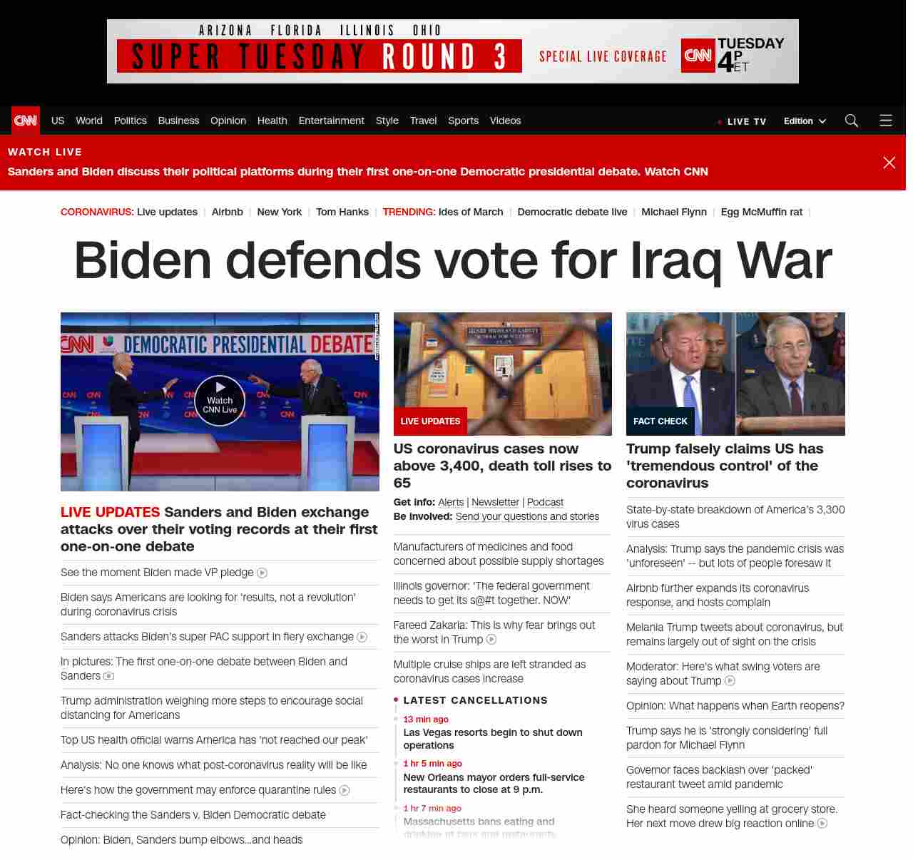 || banner-text–natural”> Biden defends vote for Iraq War ||” , title: “CNN – Breaking News, Latest News and Videos” , siblings: {“articleList”:[{“uri”:”/politics/live-news/2020-democratic-debate-live-updates/index.html”,”headline”:”u003cstrong>Sanders and Biden exchange attacks over their voting records at their first one-on-one debateu003c/strong>”,”thumbnail”:”//cdn.cnn.com/cnnnext/dam/assets/200315210949-33-cnn-debate-0315-small-11.jpg”,”duration”:””,”description”:””,”layout”:””